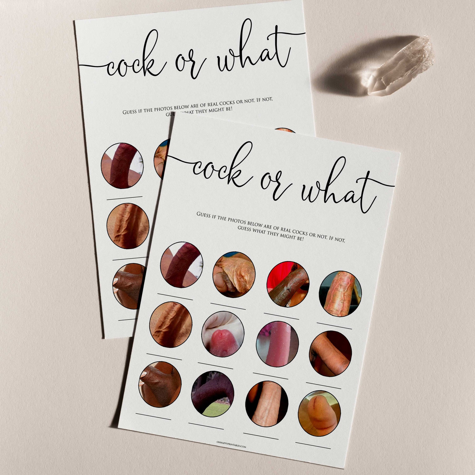 A hilarious bridal shower game that's great for brides who like to have a bit of fun! Guess whether the photo is a cock - or something a little more innocent! This printable game comes with a photo reveal answer key, and is available in two sizes.