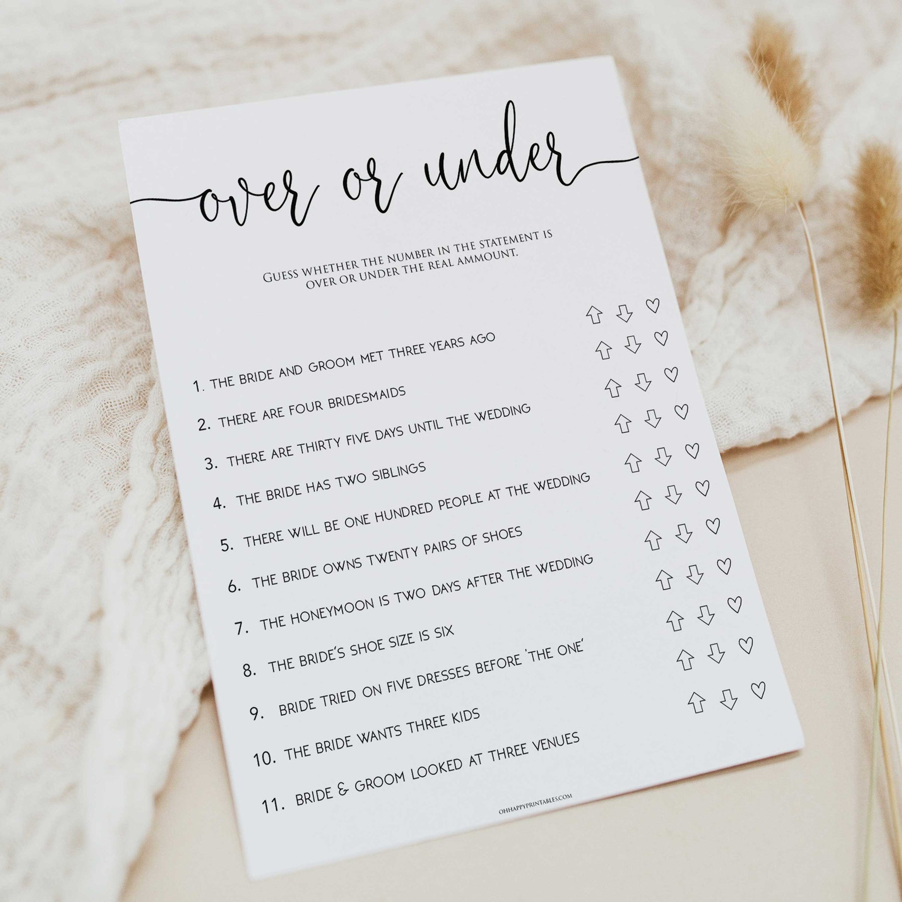 Are you good with your numbers and dates? Over or Under is a fun Bridal Shower game to see how well you know the bride and her wedding timeline! Guess whether the number in the statement is over or under the real amount.