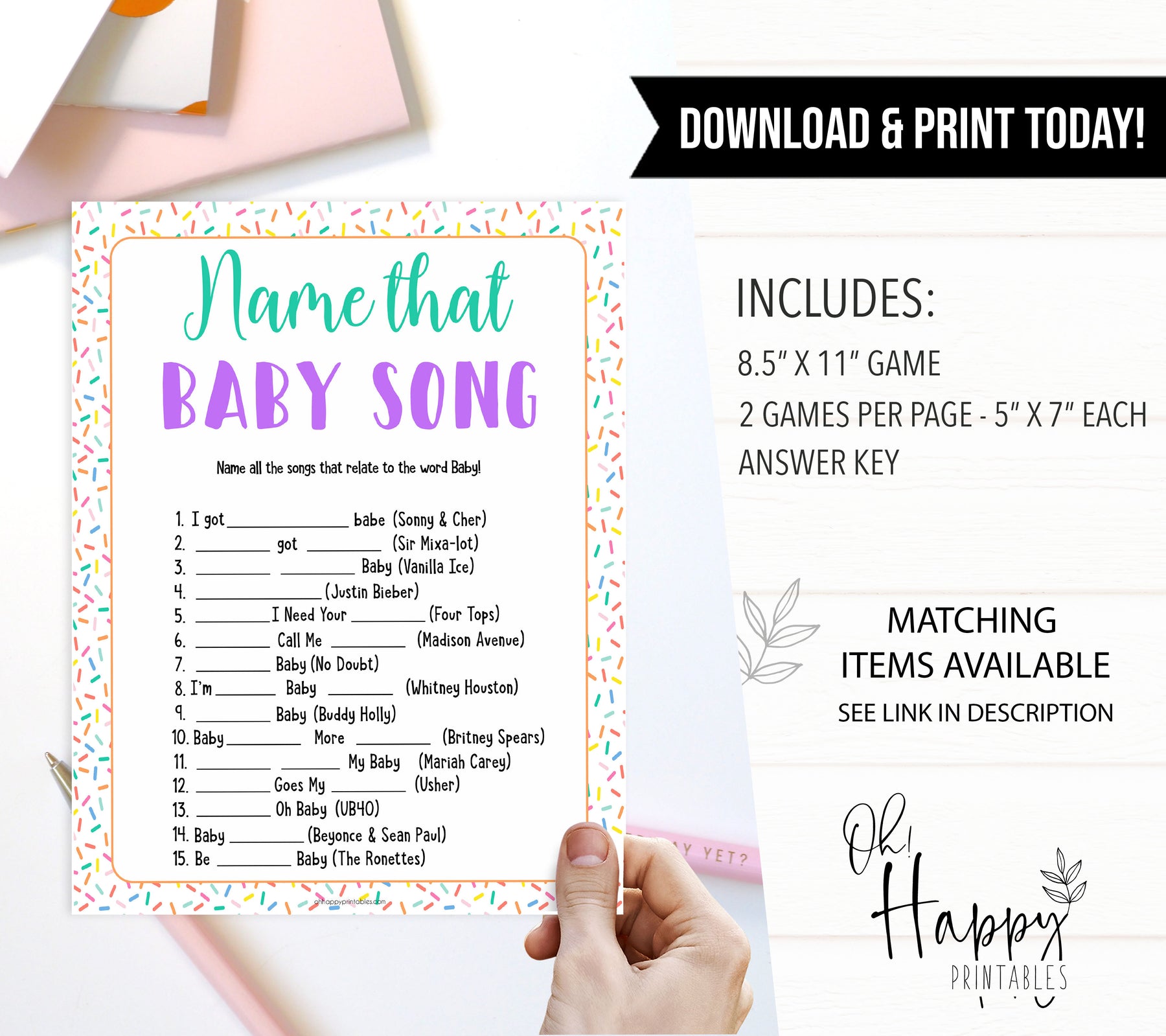Have your friends fill in the blanks with the song title. They all have the word "Baby" in the title! Just download and print at home. The one with the most right answers win.