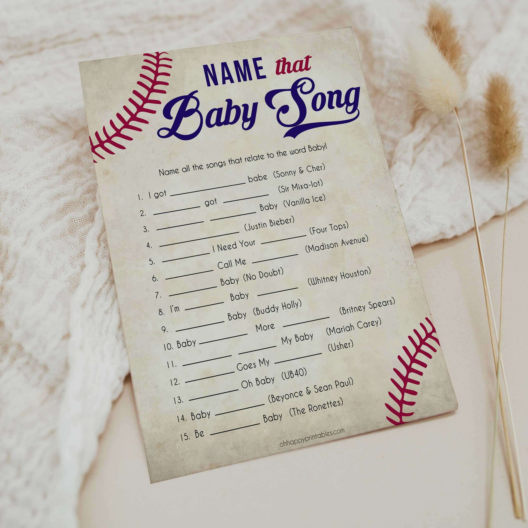 Have your friends fill in the blanks with the song title. They all have the word "Baby" in the title! Just download and print at home. The one with the most right answers win.