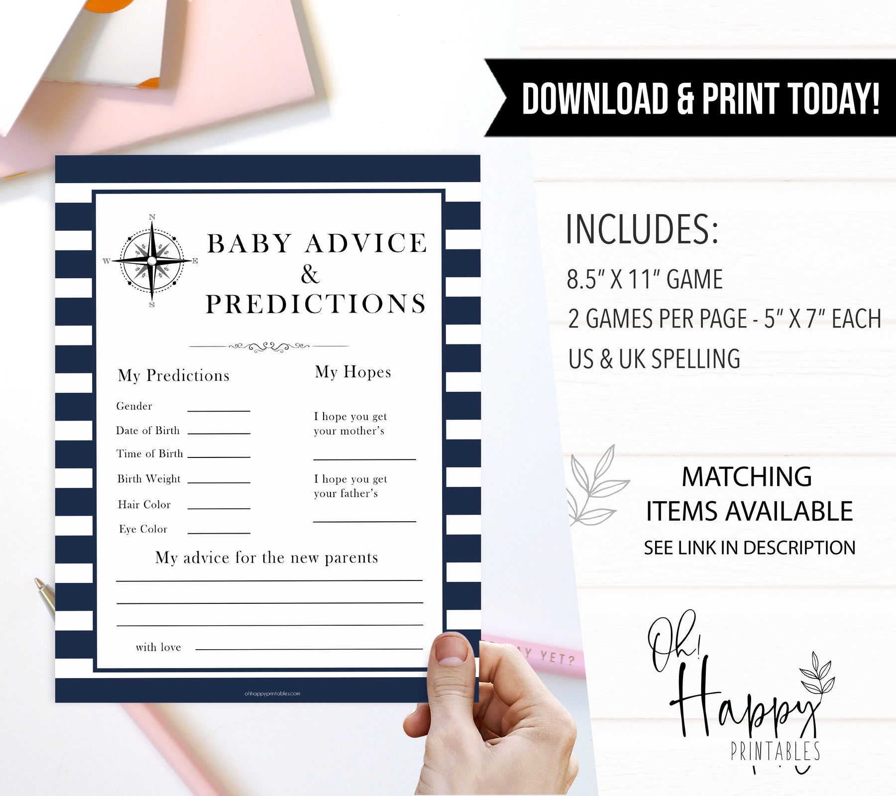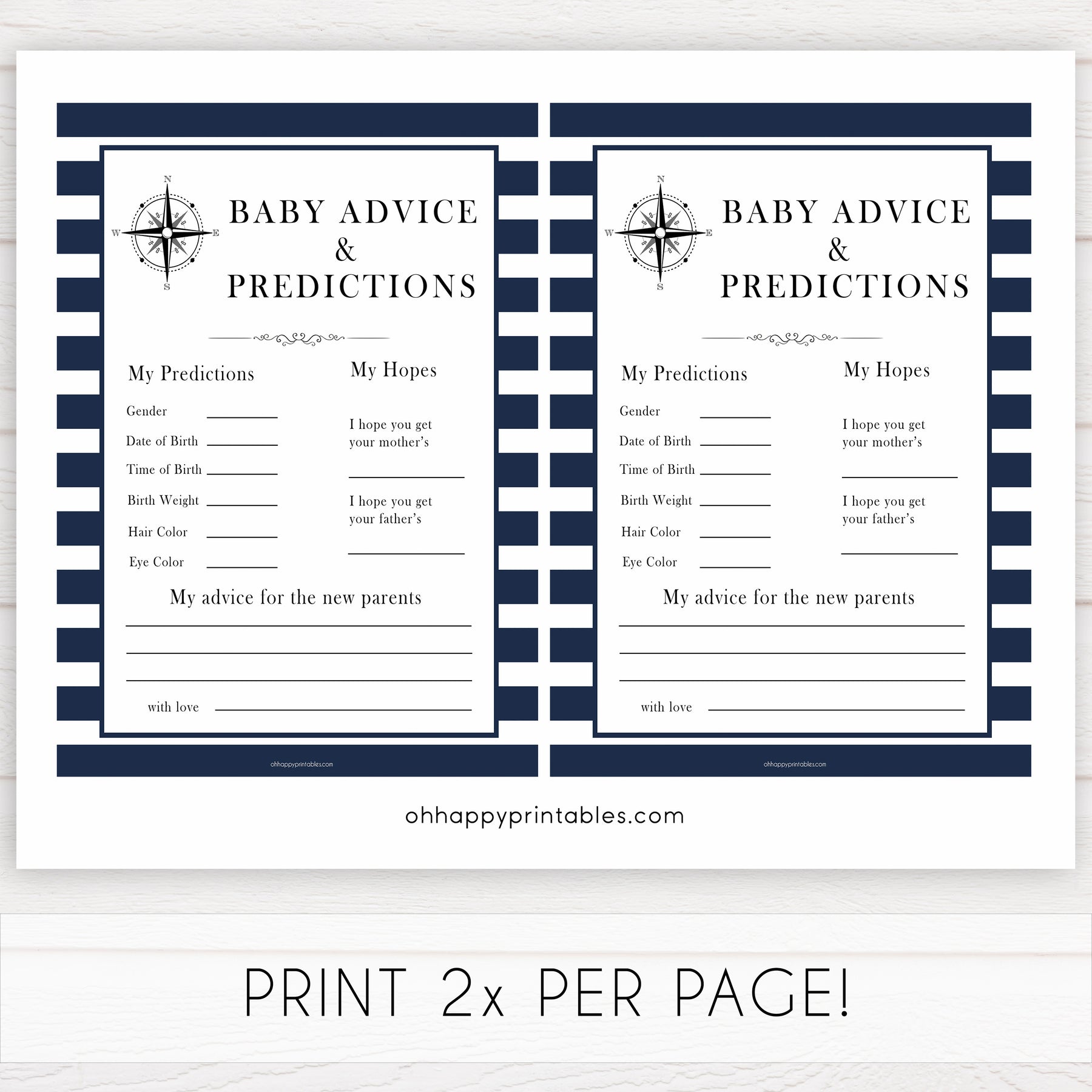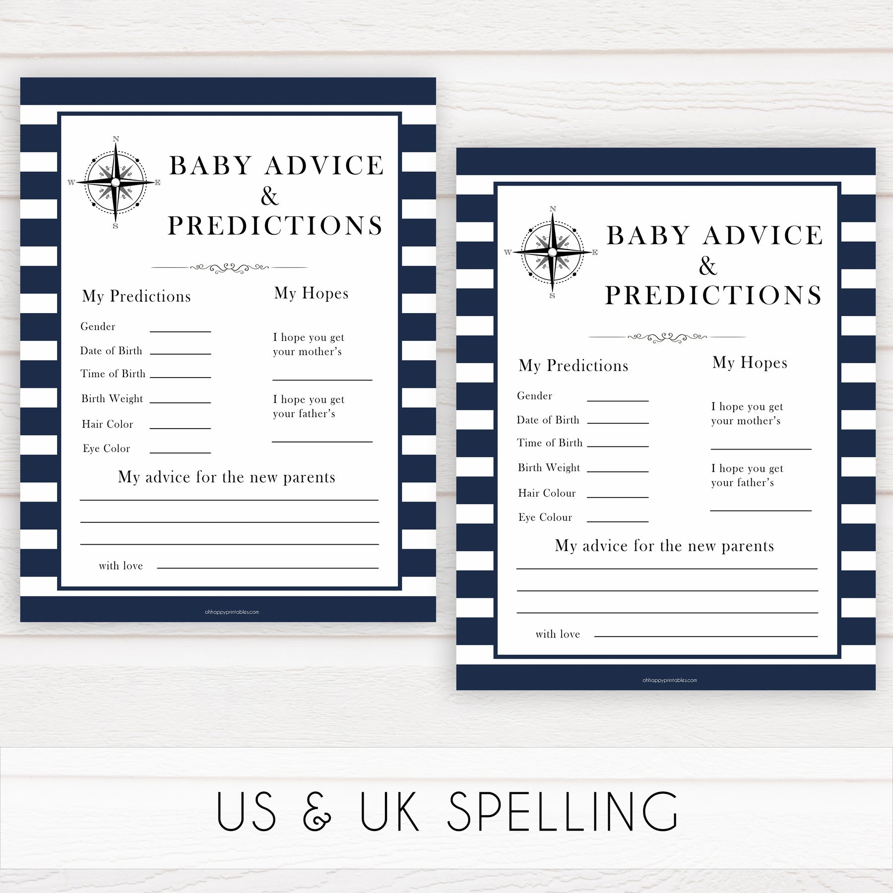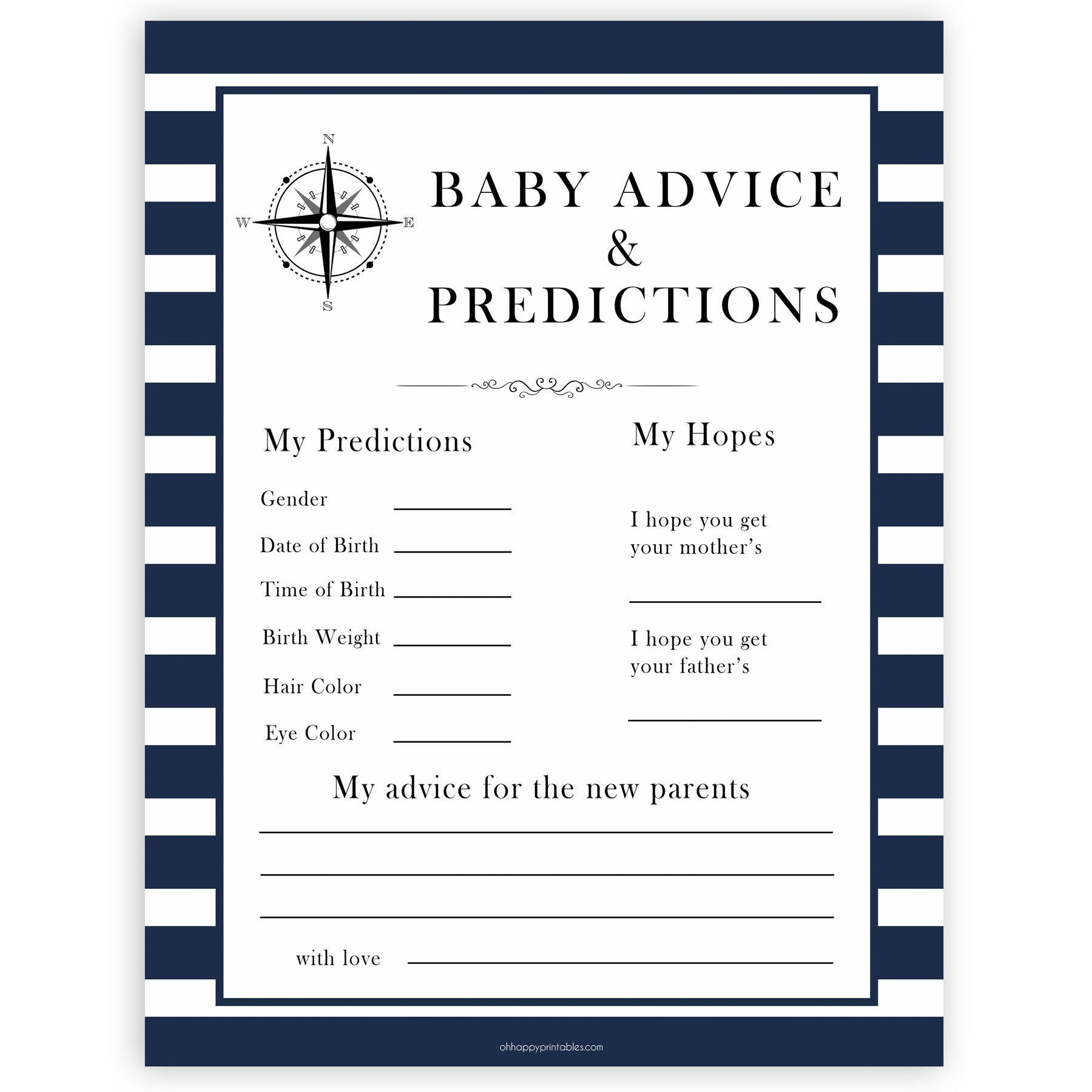 A gorgeous keepsake for the new parents, our Baby Advice & Predictions card is a cute addition to any baby shower. Fill it in with your predictions for the new baby, as well as words of advice and well wishes. Simply download and print as many as you need.