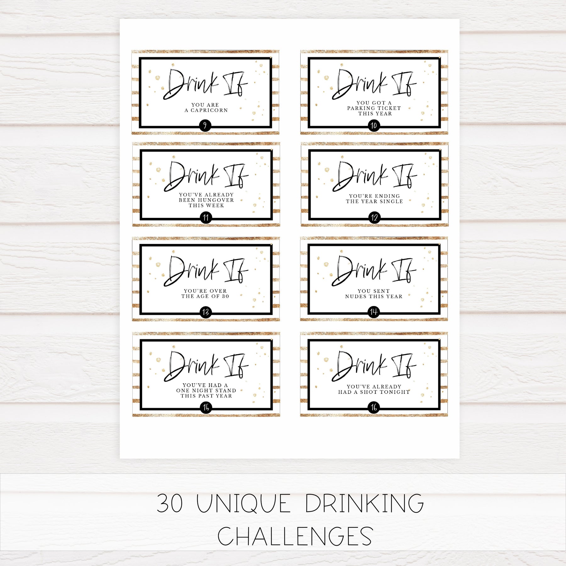 Get everyone in the mood to party with this hilarious New Years Eve Drink If game! Featuring a variety of fun scenarios, no one is getting away without drinking here!