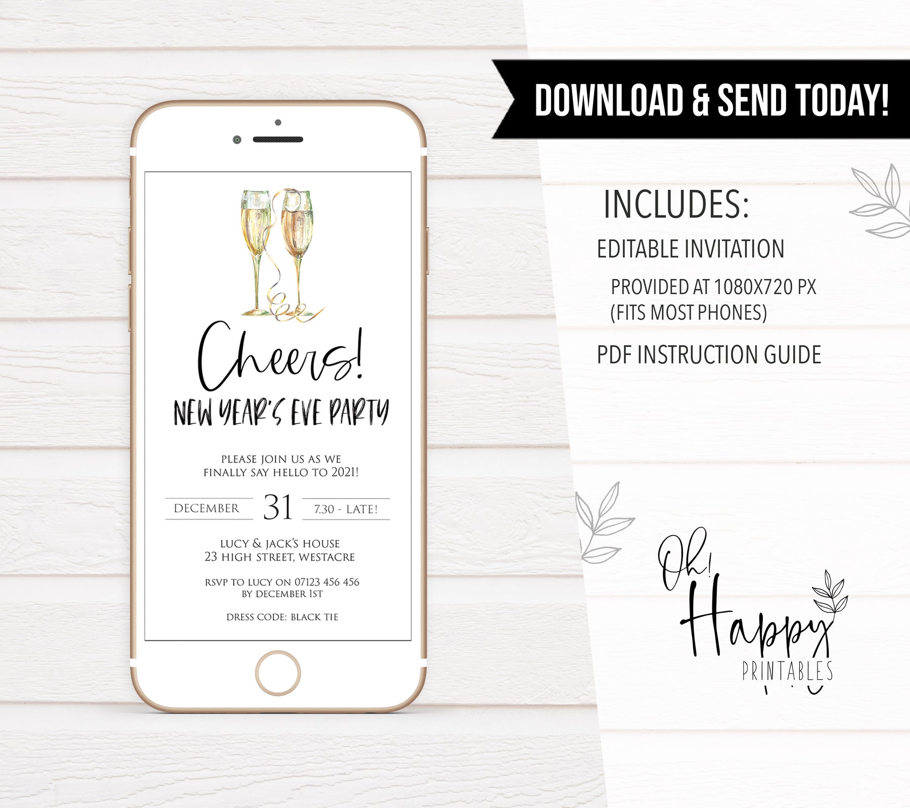 EDITABLE Cheers Phone Invitation Template - New Years Eve