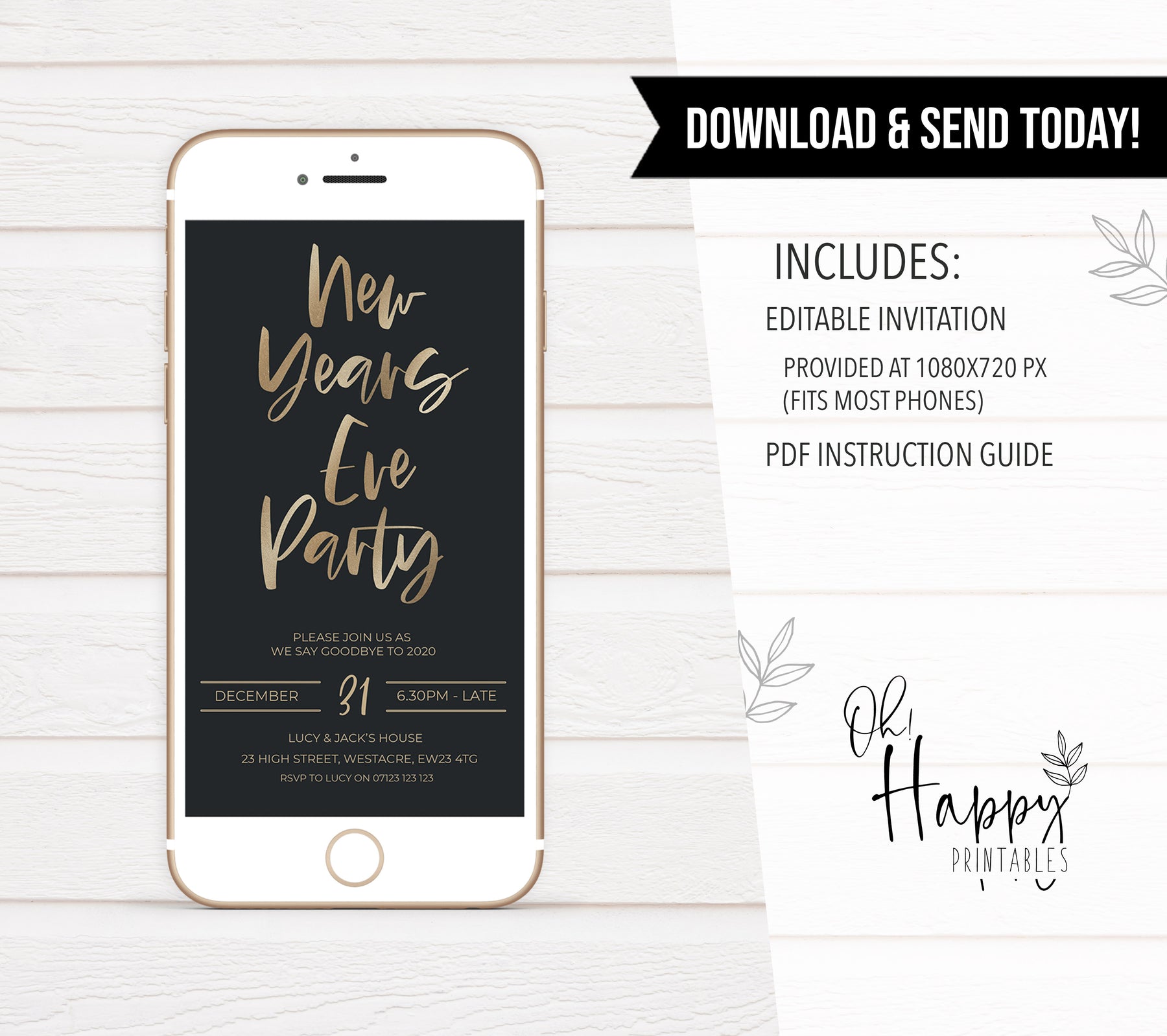 After all the Christmas cheer, it’s time to say goodbye to the old and ring in the new year! Our New Years Eve invitation is the perfect way to get your friends excited for the big night as you celebrate in style. Available immediately, it couldn't be easier to download, edit and send to your friends via WhatsApp, Facebook Messenger, or SMS etc.