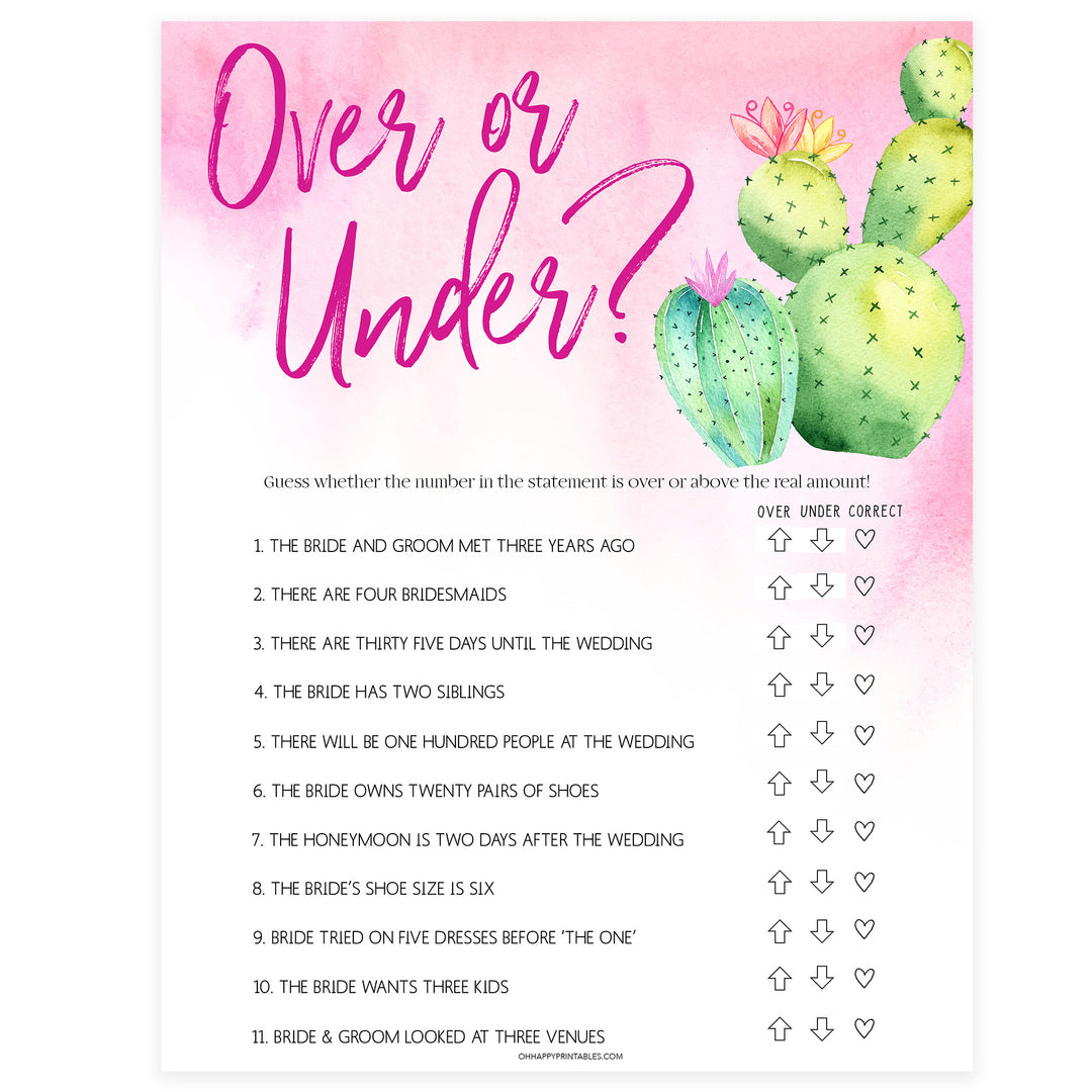 Over or Under Bridal Game - Fiesta