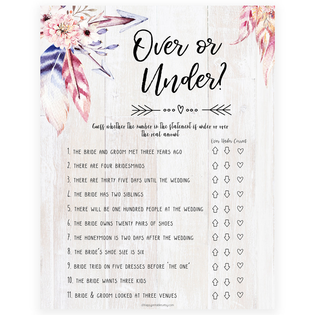 Over or Under Bridal Game - Boho