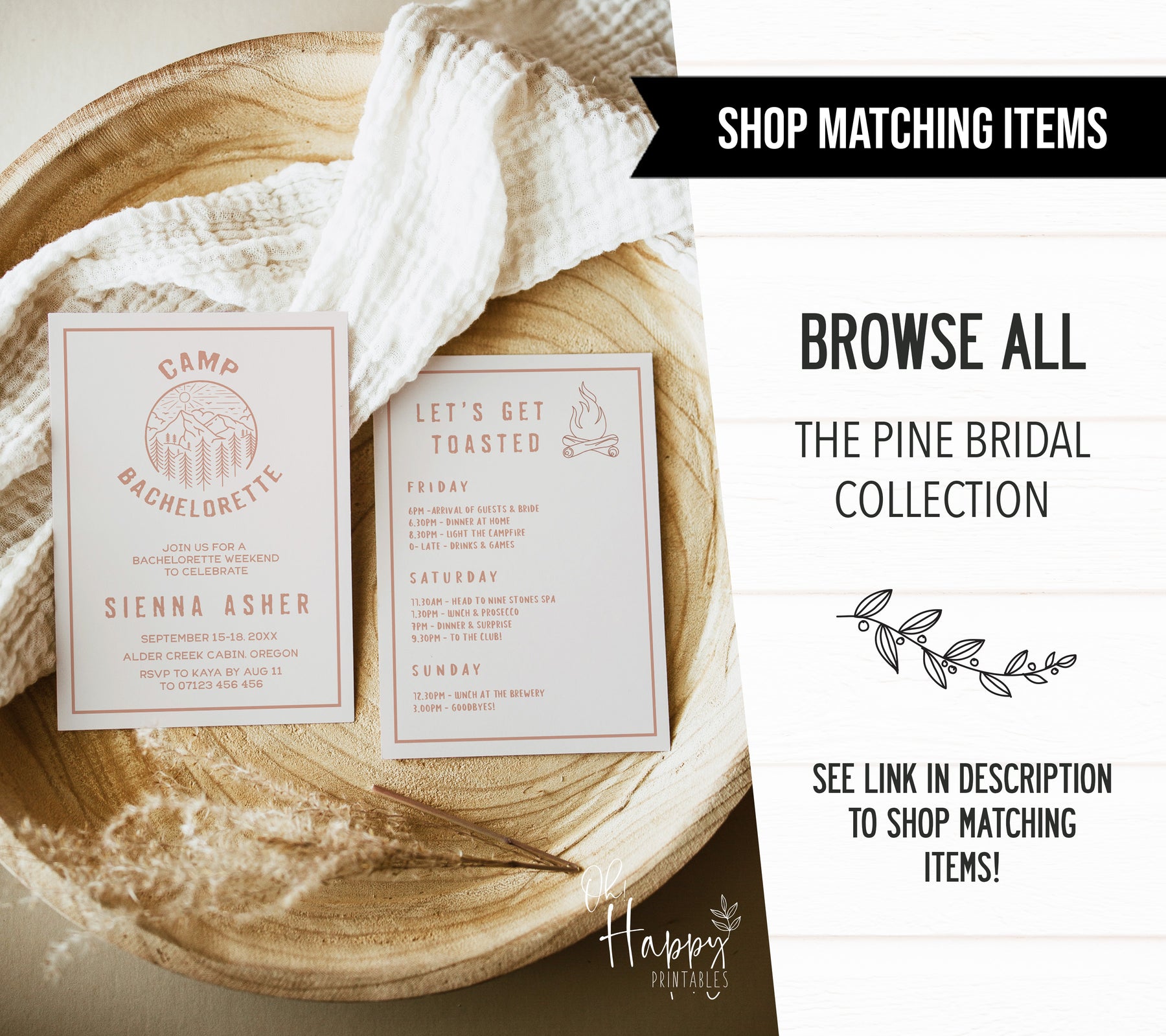 This bachelorette welcome sign adds the perfect finishing touch to your camp bachelorette. It's a fully editable template that can be printed at home, or at the print shop of your choice! Find all your games, party decor and more in our store 💜