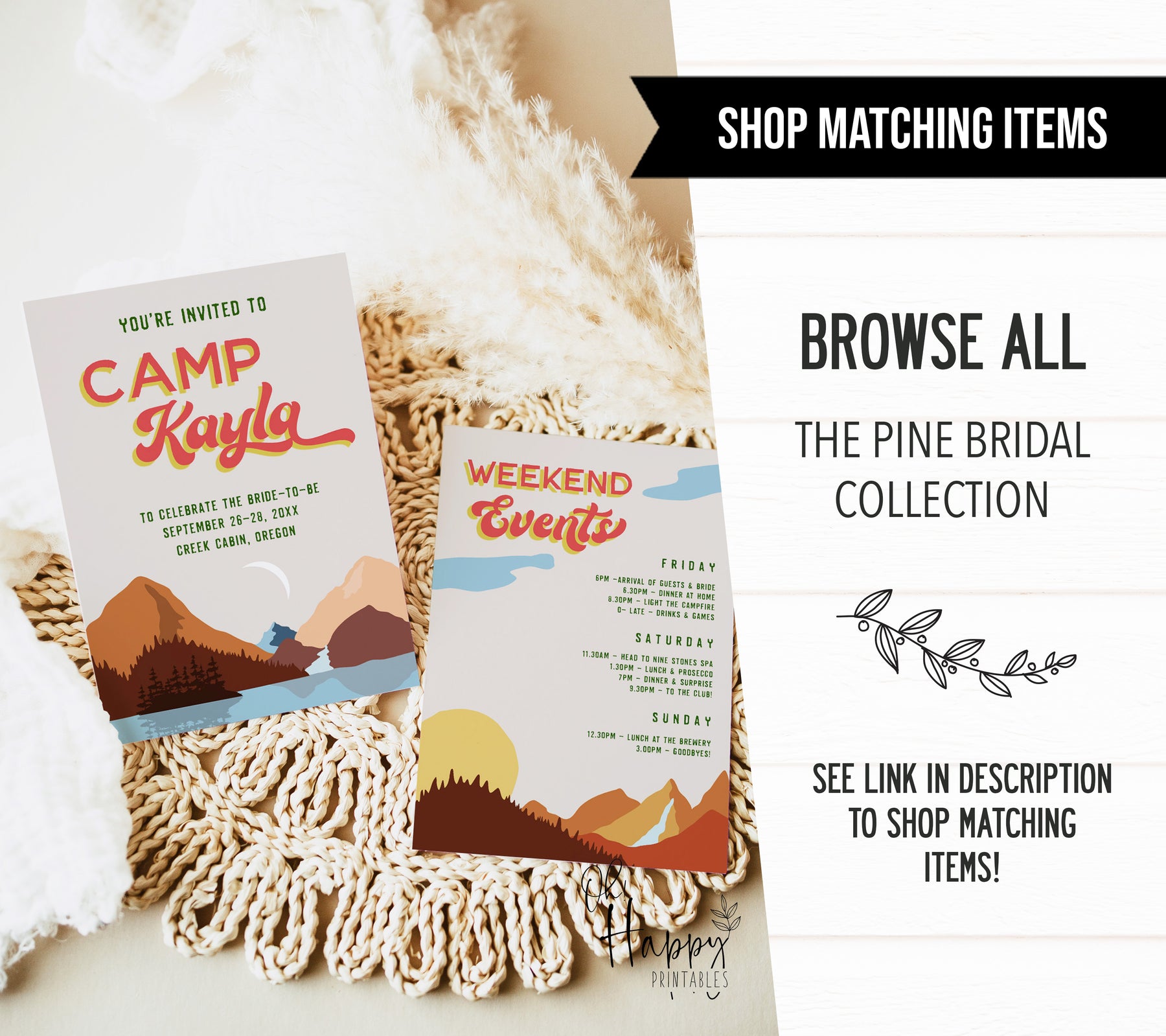 This bachelorette welcome sign adds the perfect finishing touch to your camp bachelorette. It's a fully editable template that can be printed at home, or at the print shop of your choice! Find all your games, party decor and more in our store 💜