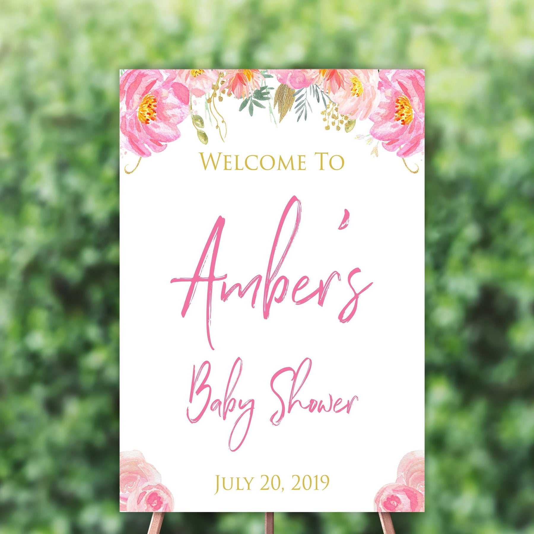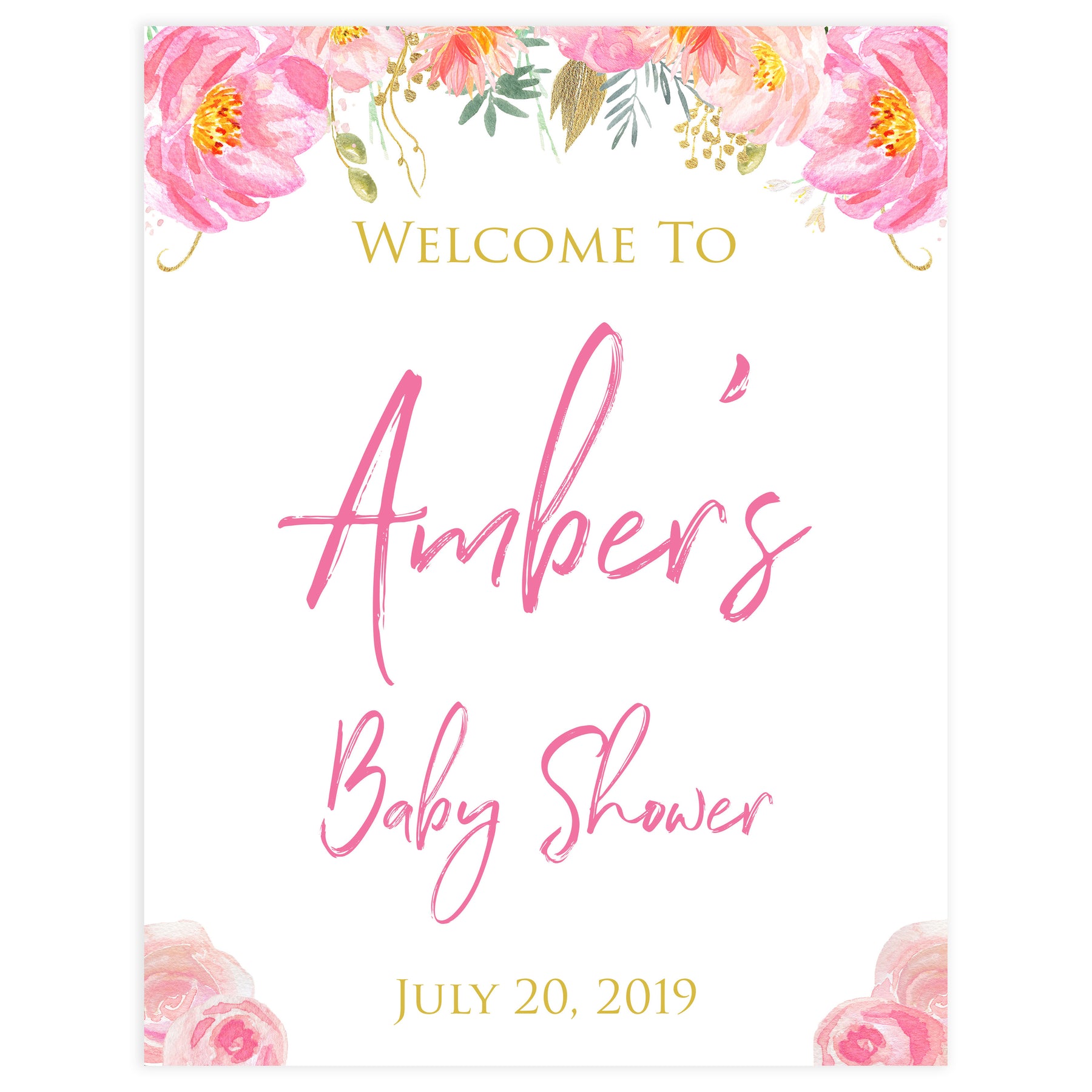 baby welcome signs, printable baby welcome signs, blush floral baby shower, bush baby shower decor, baby welcome signs