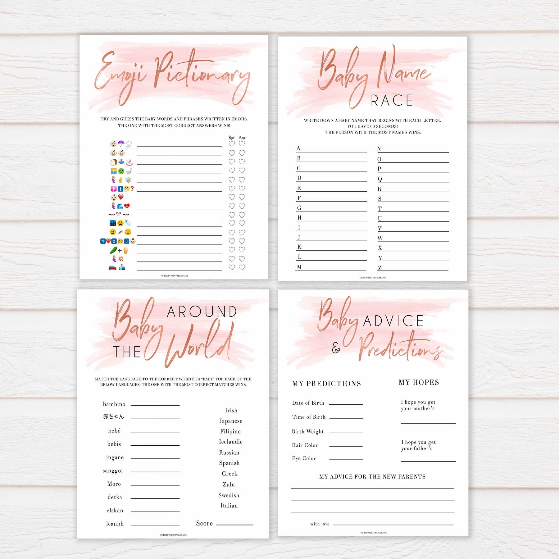 10 Pink Swash Baby Shower Games Bundle