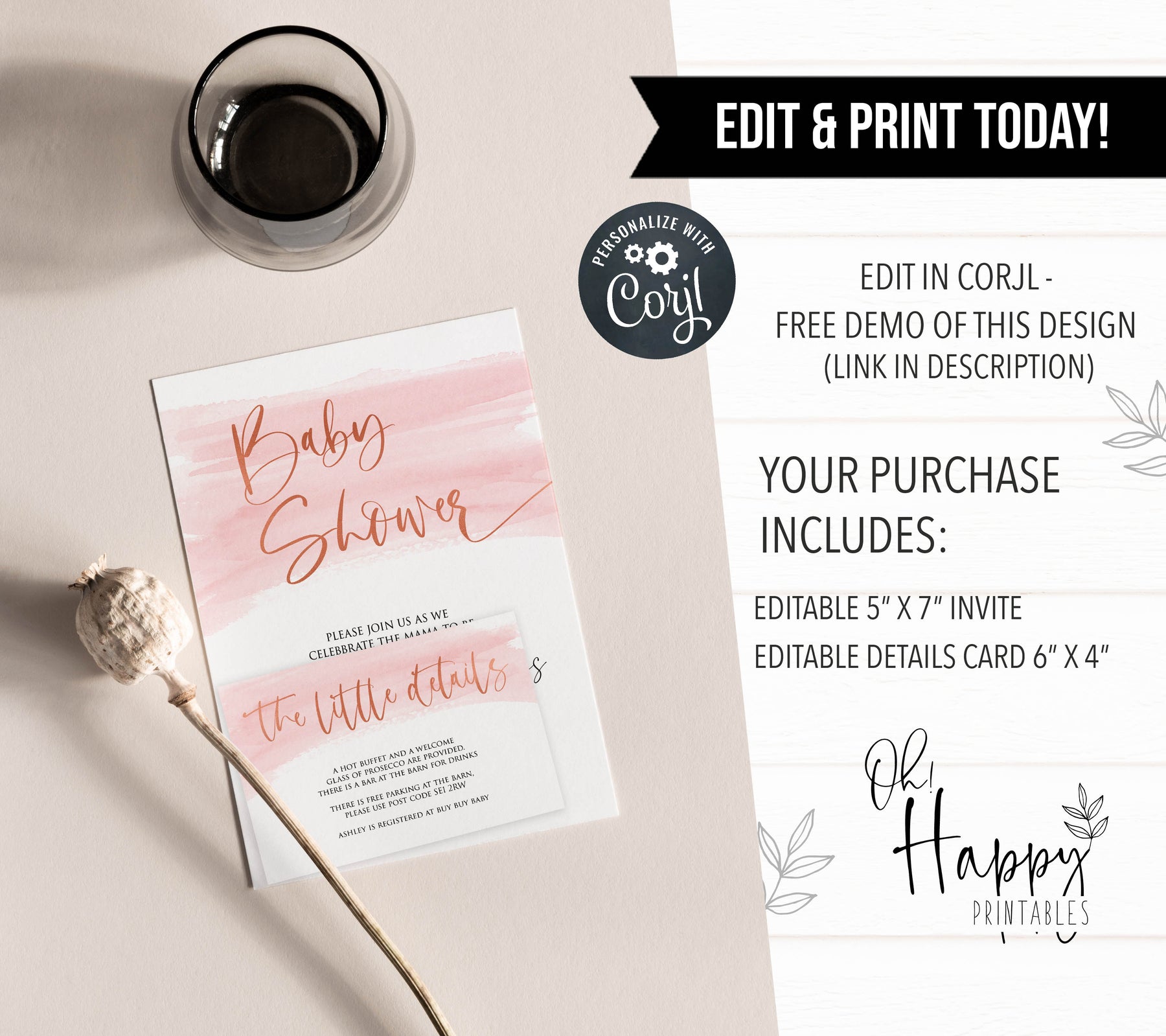 From our best-selling baby shower invitations, including a details card, it has everything your friends and family need to make it a party to remember. Download immediately and edit yourself, it couldn't be simpler!