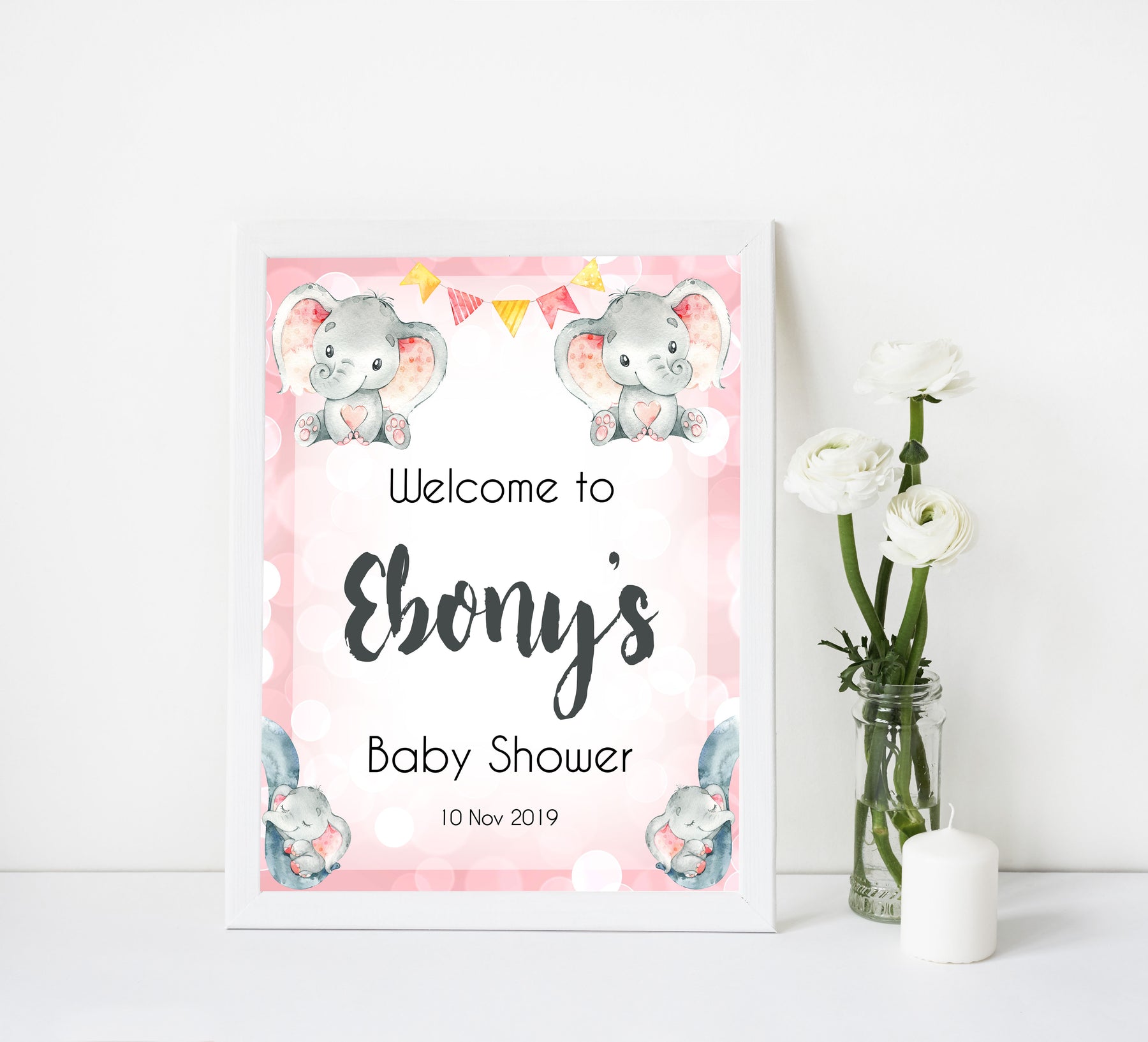 Add a little something extra to your baby shower with this 'Welcome Baby Shower Sign'