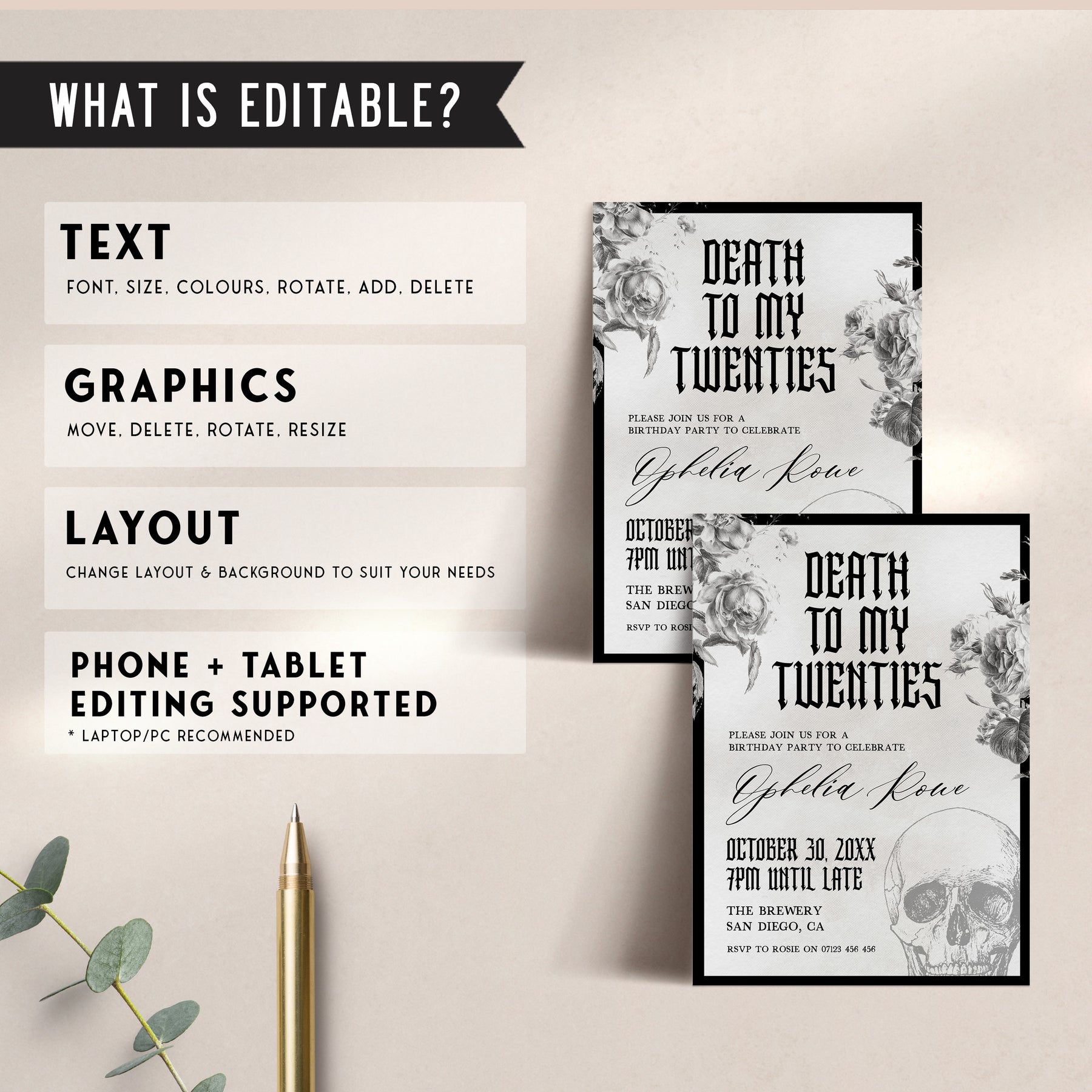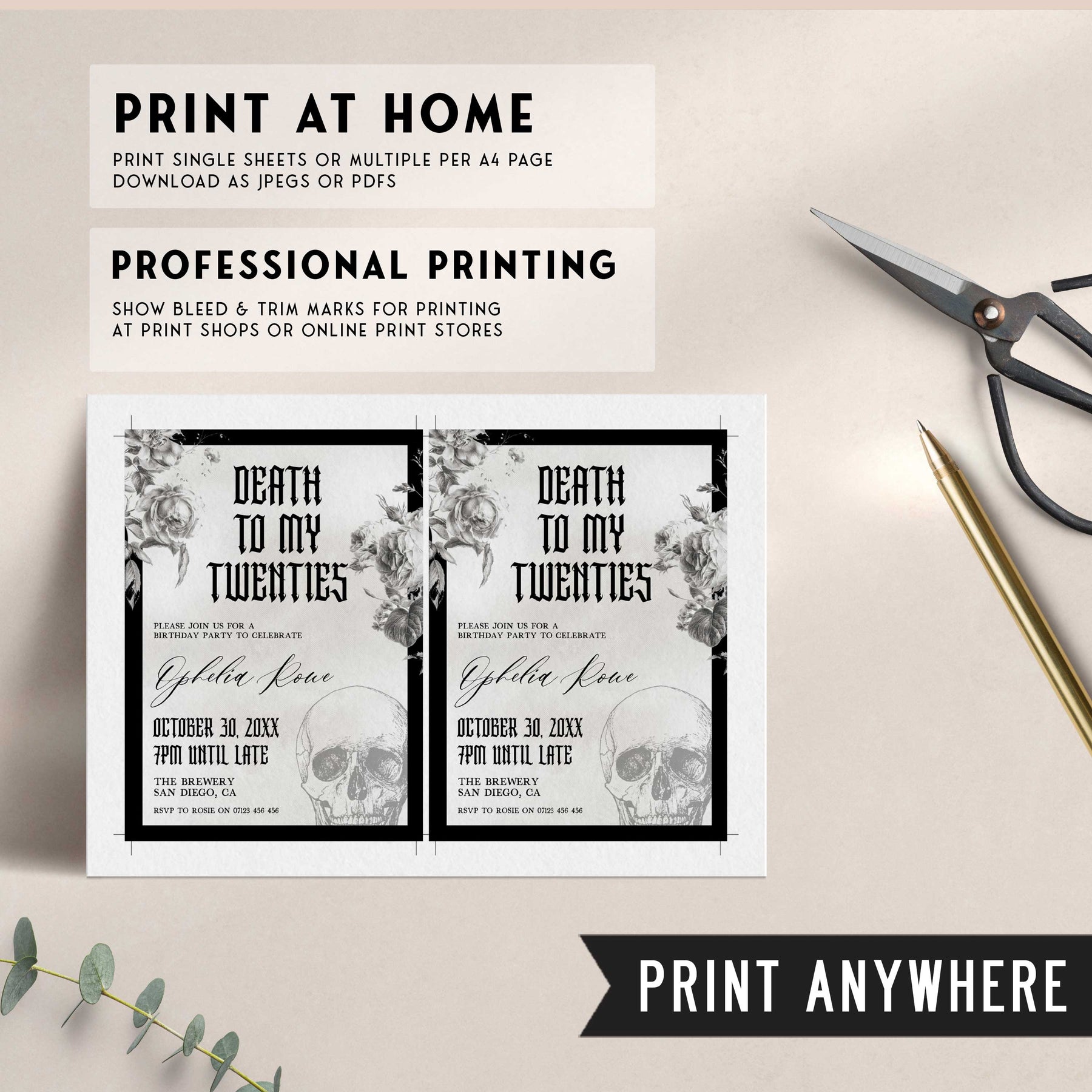 Are you ready to say goodbye to your 20s and welcome a new chapter of your life? With bold, eye-catching graphics and a playful yet sophisticated tone, it sets the tone for an unforgettable birthday celebration. Whether you're planning an intimate gathering with close friends or a larger event for all your loved ones, this invitation is sure to set the perfect tone. It's the perfect way to celebrate your past while looking forward to all the exciting adventures that lie ahead. Customise the wording and simply download and print, it couldn't be easier.