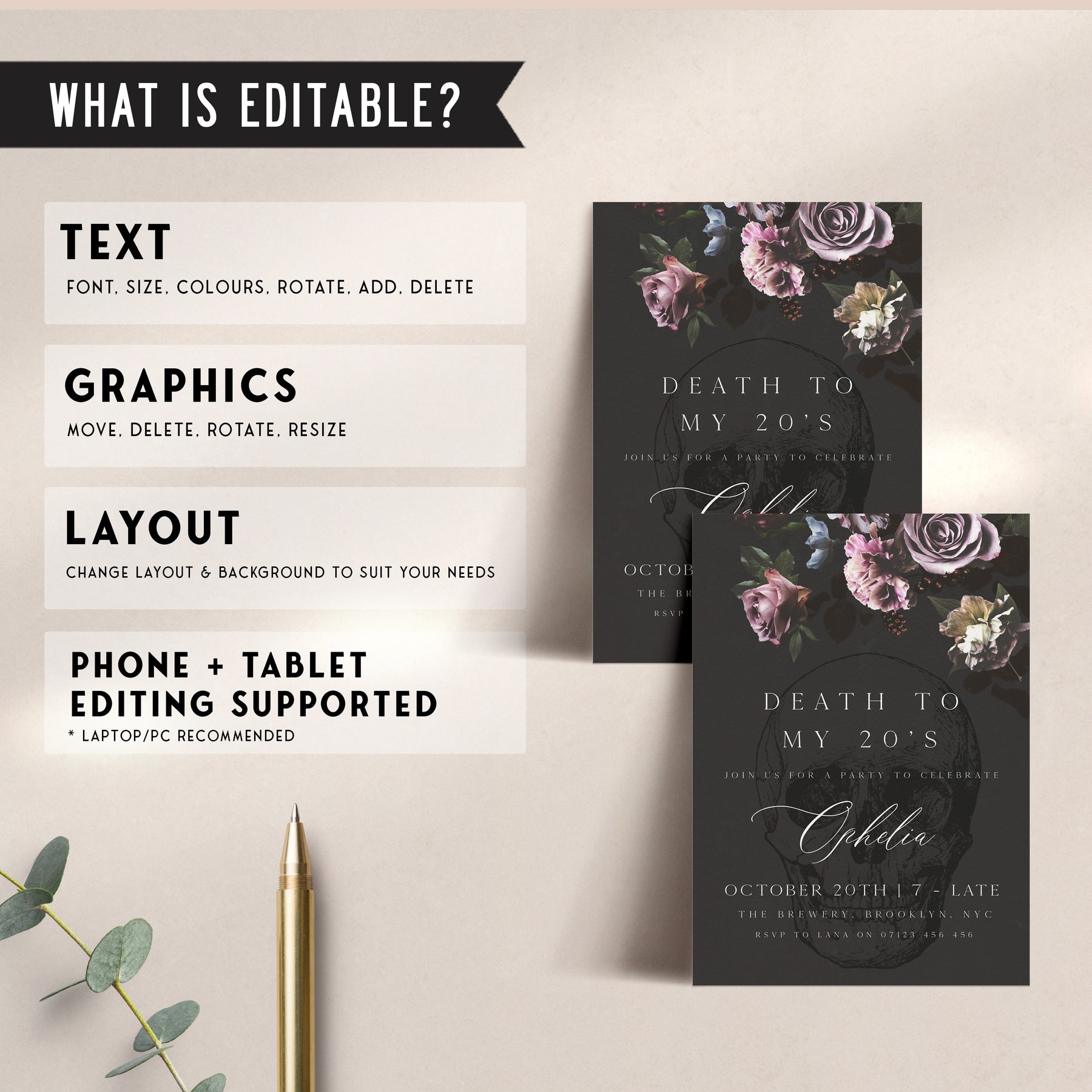 Are you ready to say goodbye to your 20s and welcome a new chapter of your life? With bold, eye-catching graphics and a playful yet sophisticated tone, it sets the tone for an unforgettable birthday celebration. Whether you're planning an intimate gathering with close friends or a larger event for all your loved ones, this invitation is sure to set the perfect tone. It's the perfect way to celebrate your past while looking forward to all the exciting adventures that lie ahead. Customise the wording and simply download and print, it couldn't be easier.