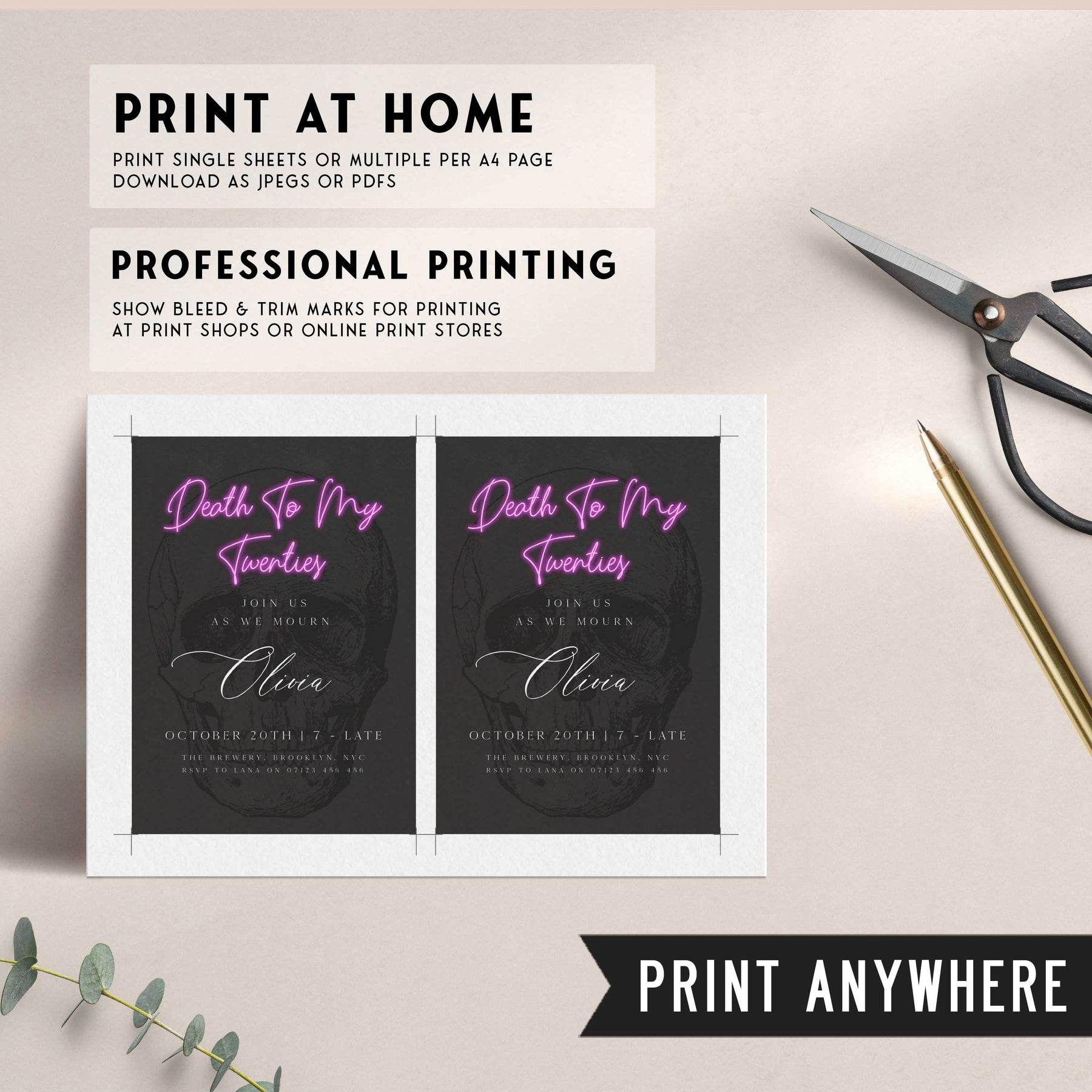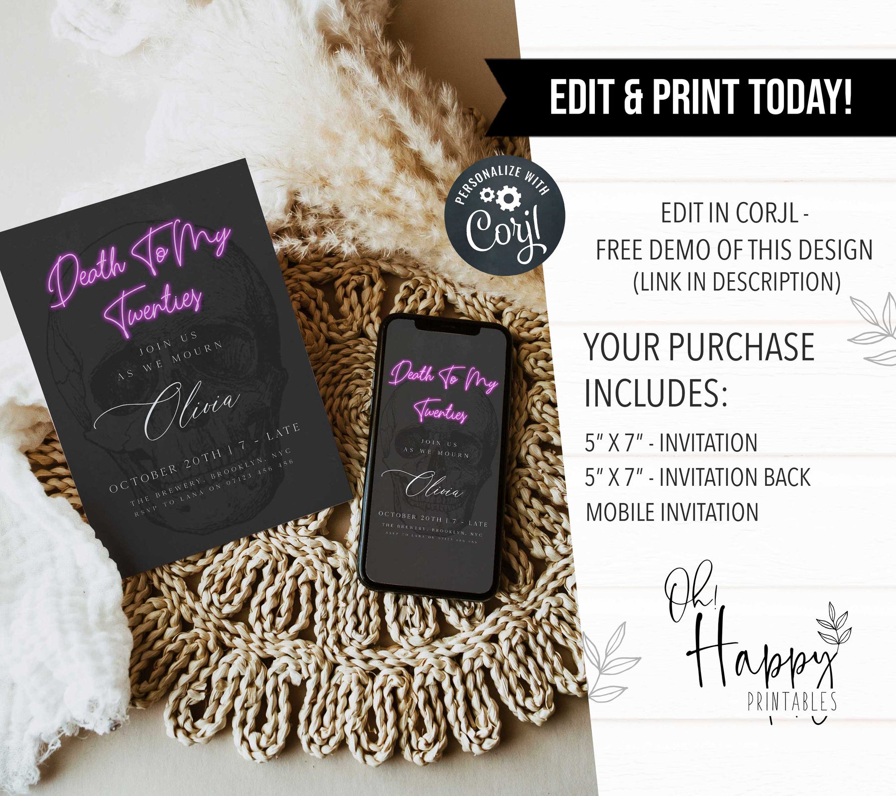 Are you ready to say goodbye to your 20s and welcome a new chapter of your life? With bold, eye-catching graphics and a playful yet sophisticated tone, it sets the tone for an unforgettable birthday celebration. Whether you're planning an intimate gathering with close friends or a larger event for all your loved ones, this invitation is sure to set the perfect tone. It's the perfect way to celebrate your past while looking forward to all the exciting adventures that lie ahead. Customise the wording and simply download and print, it couldn't be easier.