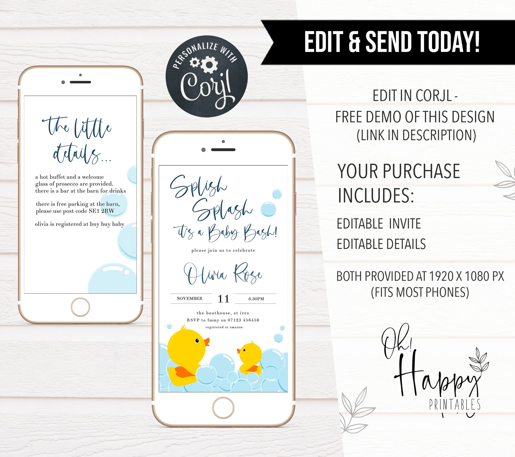 From our best-selling baby shower invitations, including a details card, it has everything your friends and family need to make it a party to remember. Download immediately and edit yourself, it couldn't be simpler!