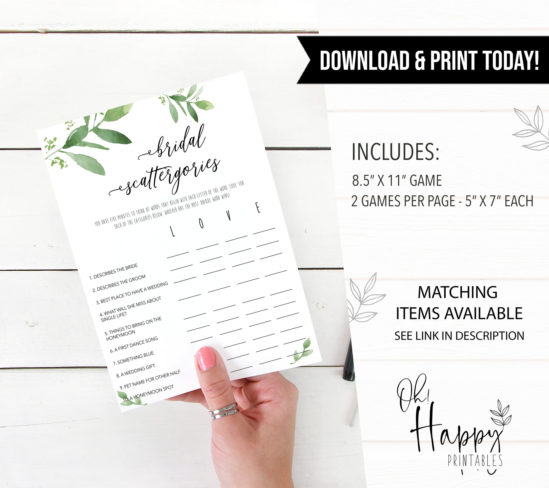 This classic bridal shower game is a great way to get the bridal shower started. Can you guess some answers to the wedding themed categories? The most unique guesses win!