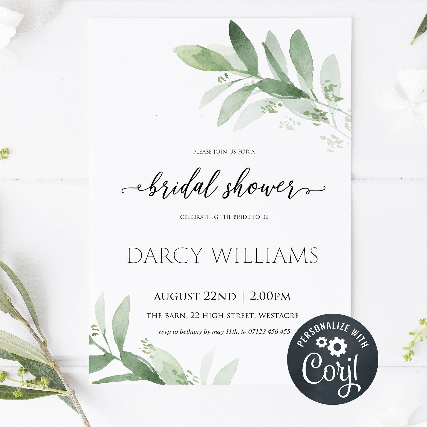 From our best-selling Greenery collection, this invite features beautiful botanical illustrations and elegant calligraphy lettering. Download immediately and edit yourself, it couldn't be simpler! This invitation set also includes a matching details card.