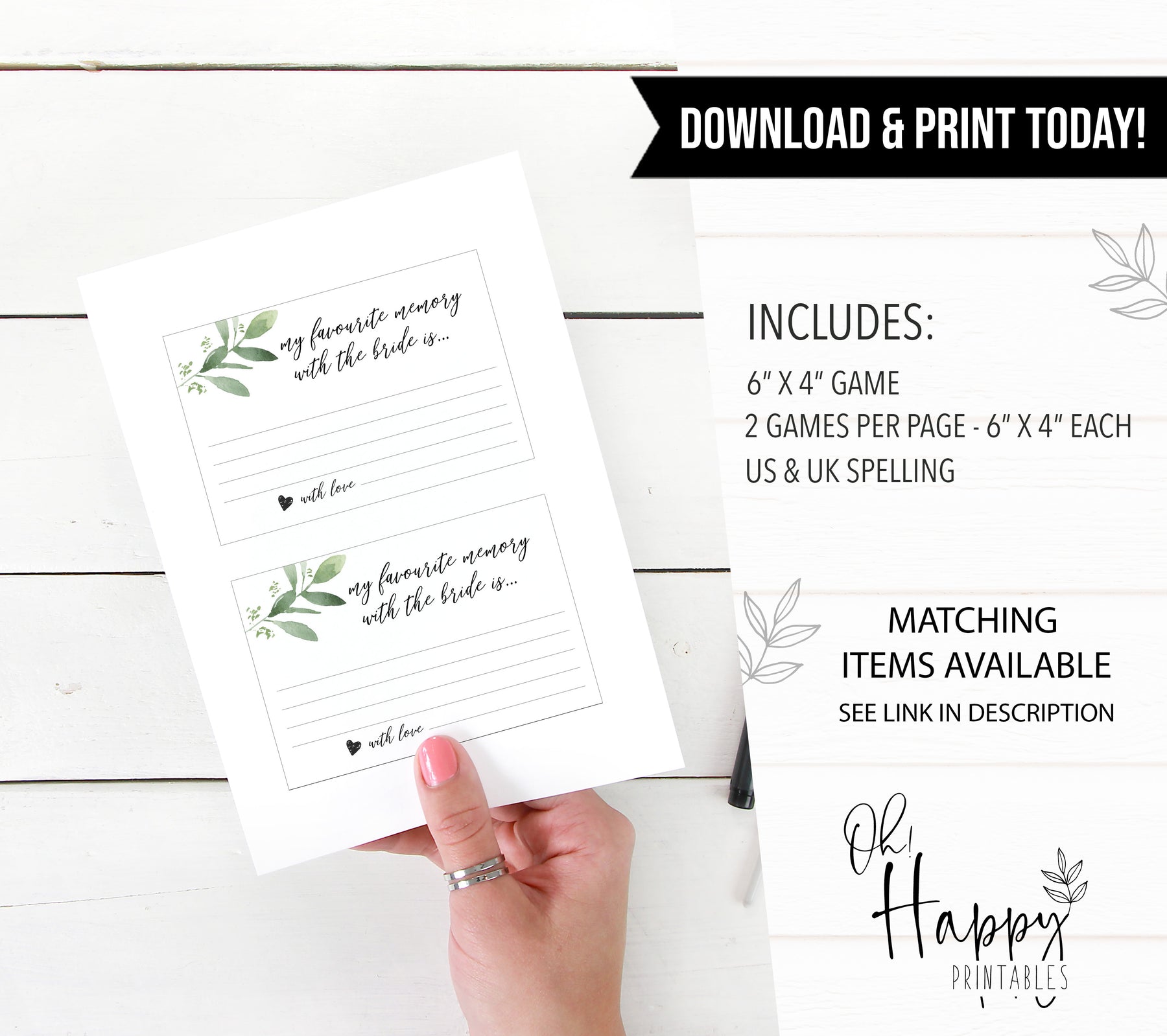 A beautiful keepsake for the Bride to Be, our Favourite Memory with the Bride cards make the perfect addition to your Bridal Shower. Turn it into a game by getting the guests to fill them out anonymously, and then see if the Bride can guess who wrote which one! Put them into a treasure box for her to keep for years to come.