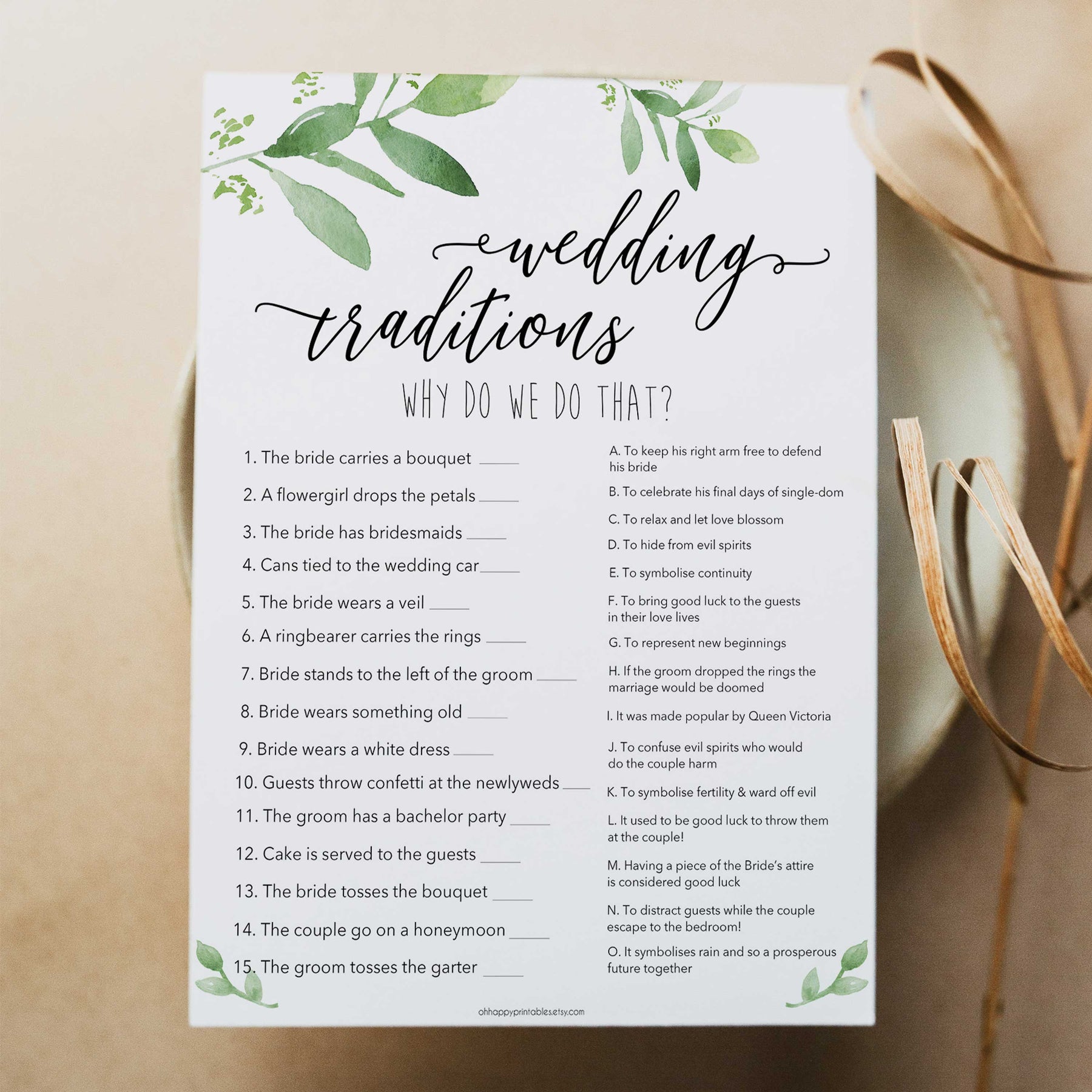 Do you know why we all throw confetti at a wedding? Or why the bride has a veil? Test your wedding knowledge with our Wedding Traditions - Why Do We Do That game. A fun bridal shower game that will get everyone thinking, and sheds some light on why you need something old and something new, something borrowed and something blue!