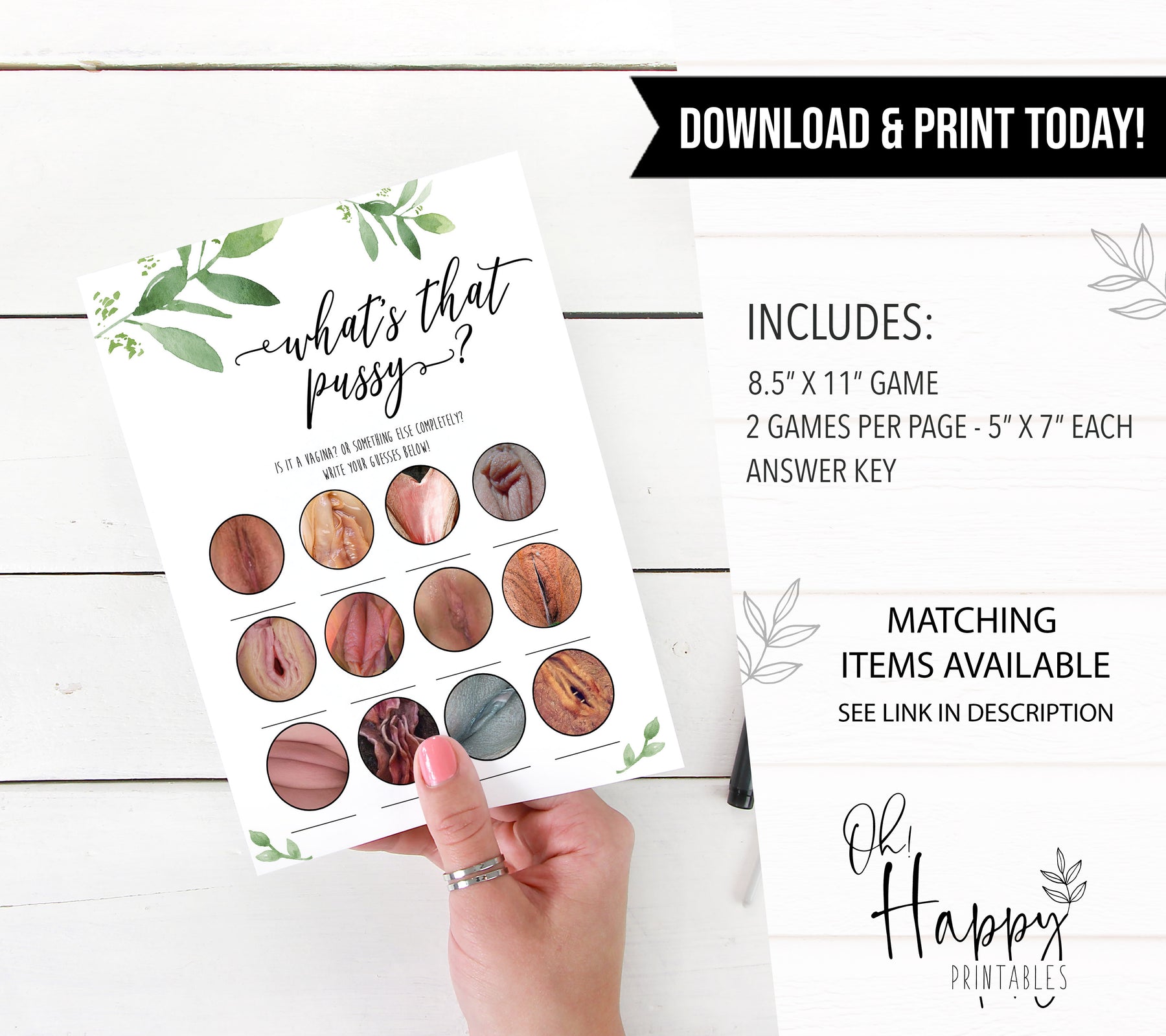 Definitely a game for the adults! As we all know, vaginas come in all shapes and sizes! This naughty bachelorette game is a great way to get everyone involved, as you try and guess which images are the real vaginas.