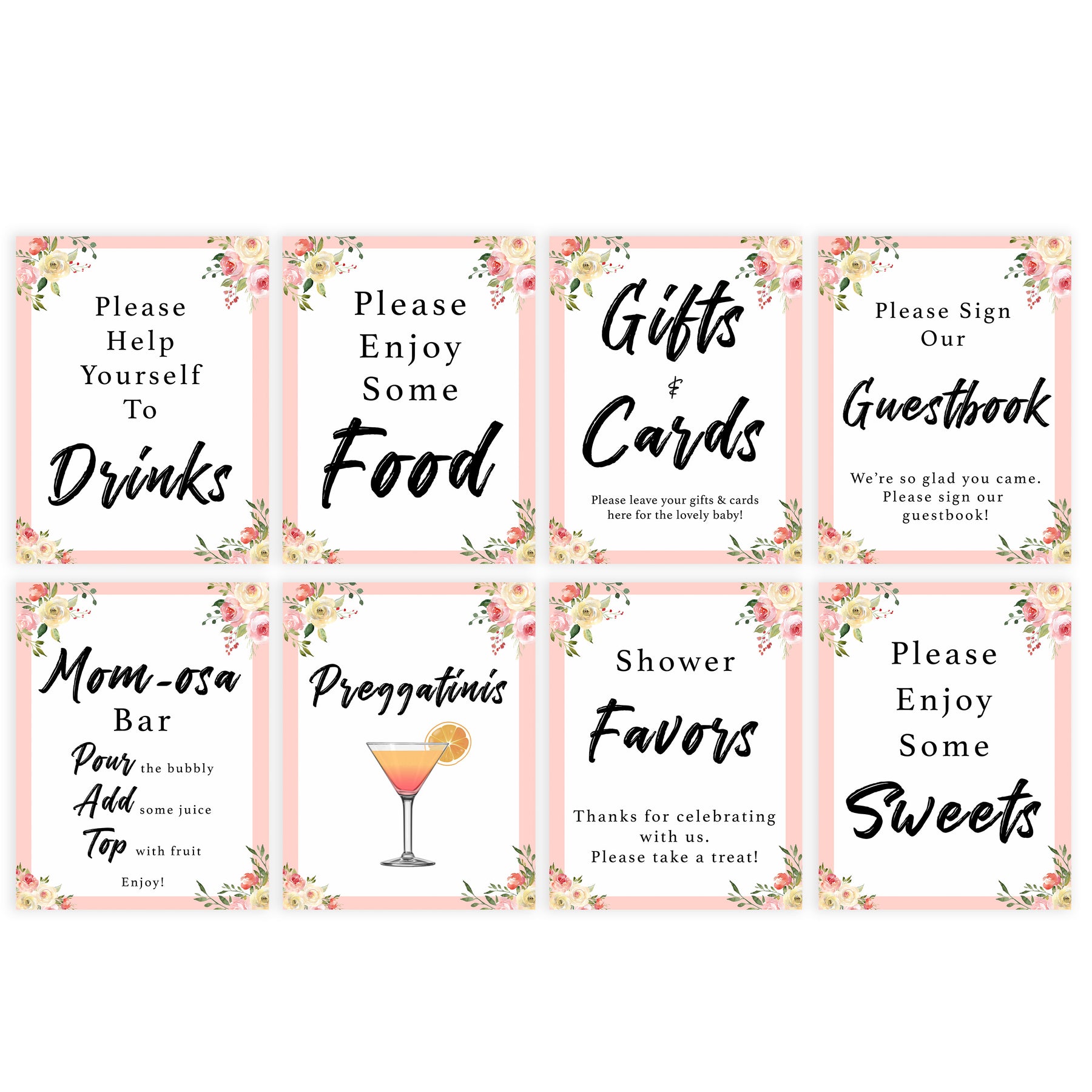 - 2x Preggatinis Sign (8.5" by 11") & (5" by 7" - 2 per page)