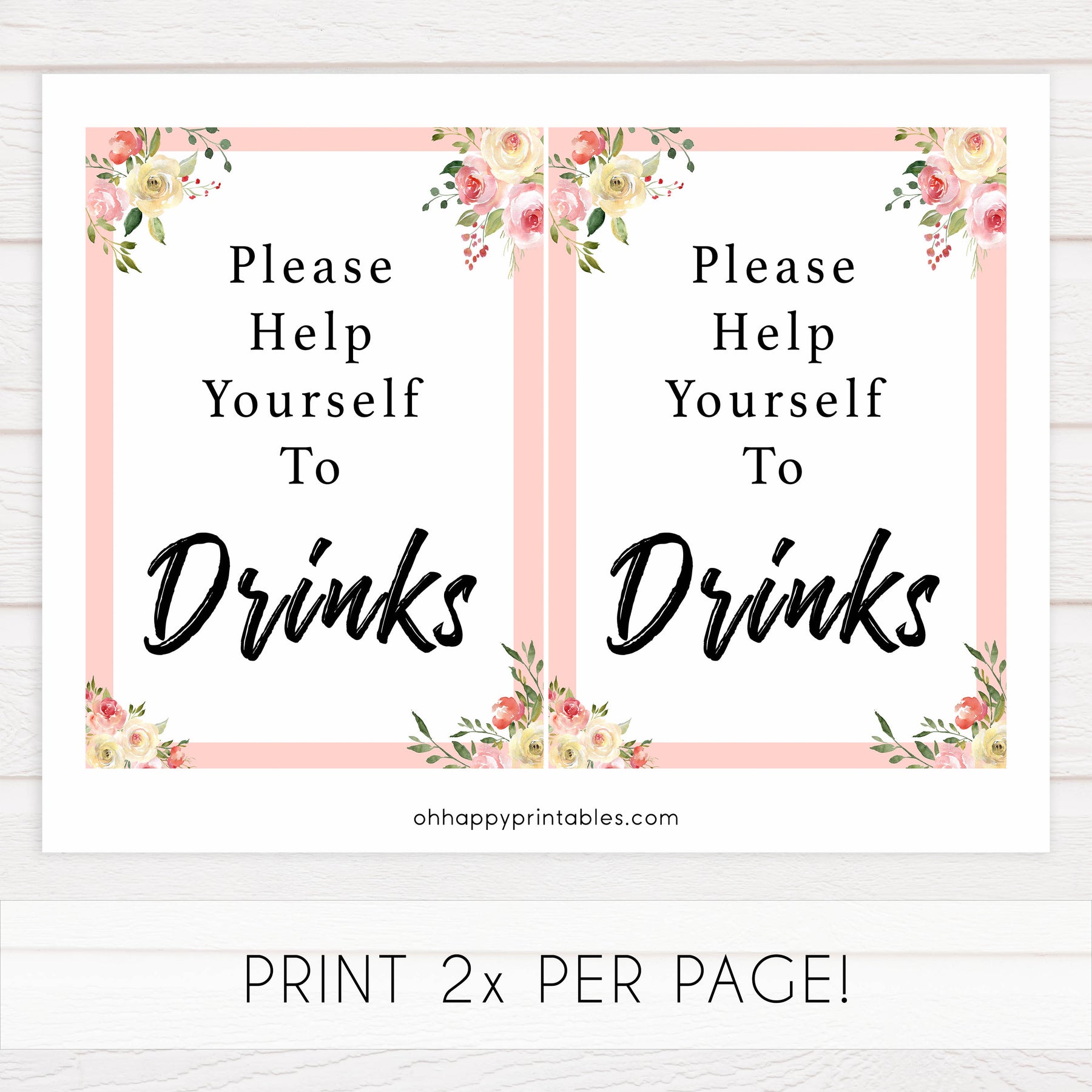 drinks baby signs, drinks table decor,,Spring floral baby decor, printable baby table signs, printable baby decor, floral table signs, fun baby signs, fun baby table signs
