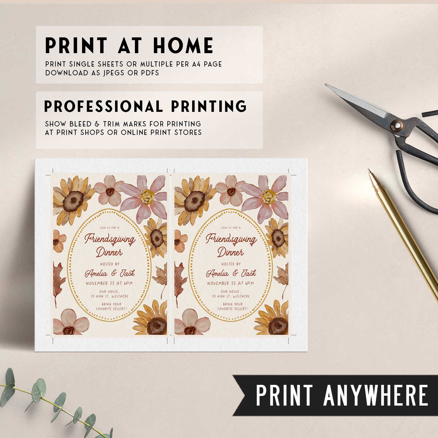 Make your Thanksgiving celebration extra special with our Editable Thanksgiving Dinner Invitation Set. Adorned with cozy autumn-themed illustrations. Customize the text to include your name, event details, and a warm holiday message. Whether you choose to print or share digitally, our versatile set offers convenience and a festive touch for any Friendsgiving or Thanksgiving gathering.