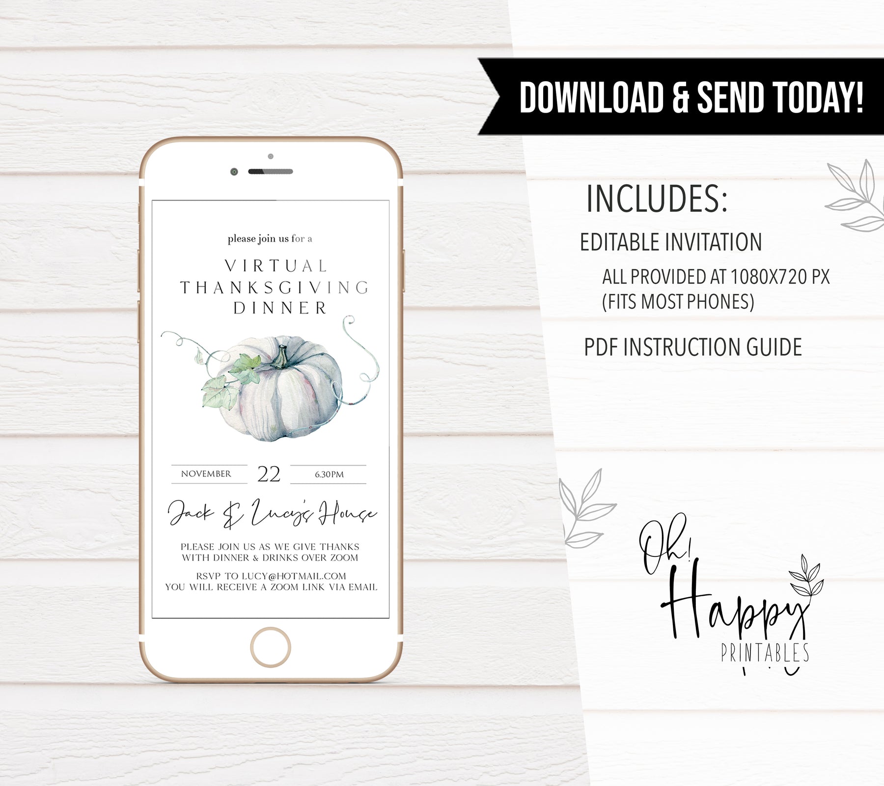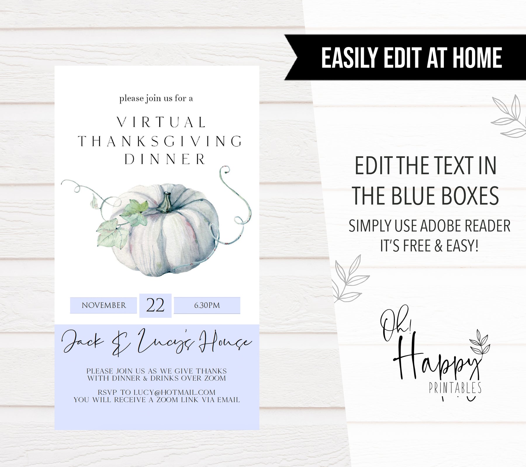 EDITABLE Virtual Pumpkin Thanksgiving Invitation Template - Thanksgiving