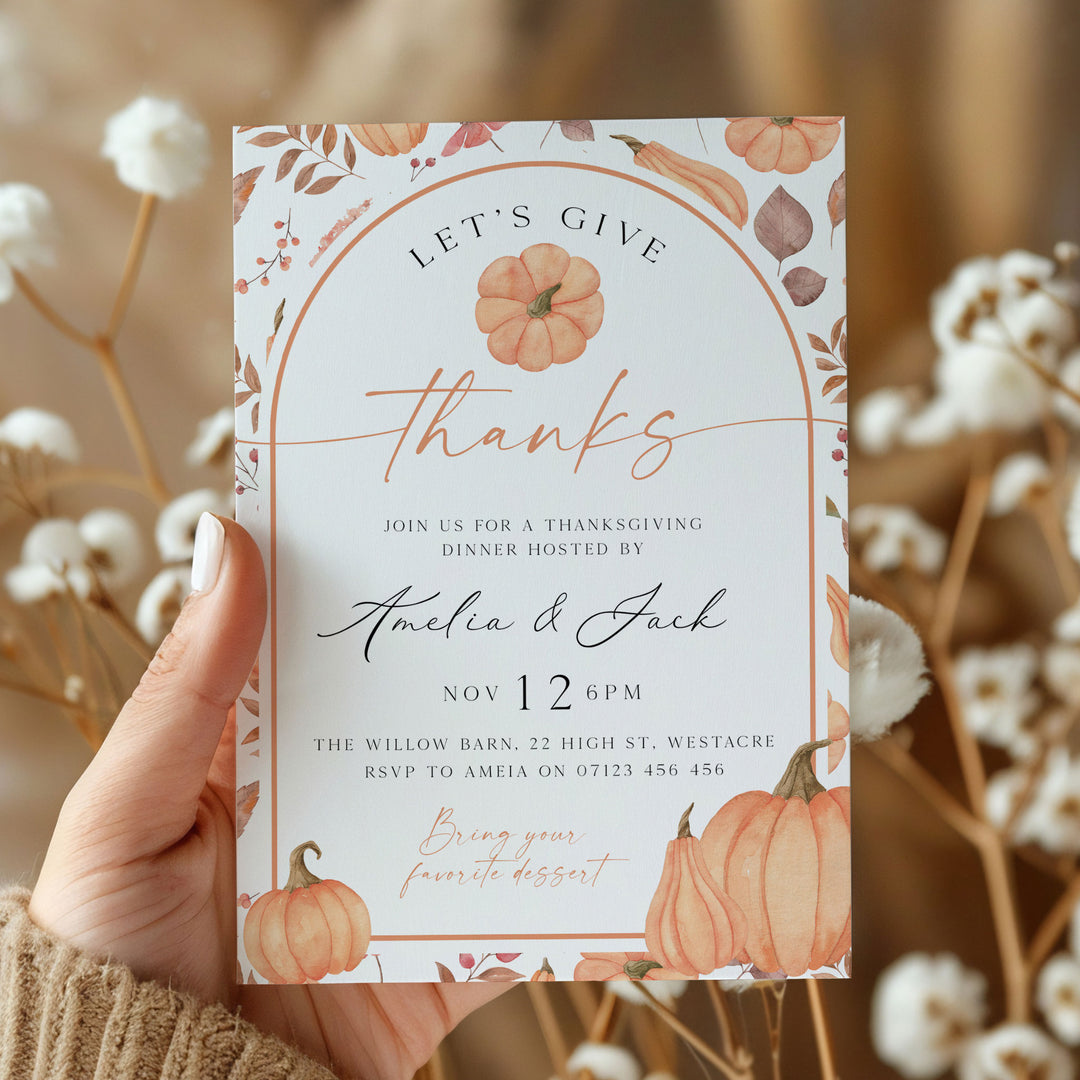 A time of gratitude and thanks, most of us love to share thanksgiving with our closest friends and family. Our printable Thanksgiving Invitations are the perfect way to let your nearest and dearest know about your thanksgiving dinner, and feature autumnal designs that honor the season. Don't forget our printable Thanksgiving Decor to add the finishing touch to your home. All of our Thanksgiving Invites & Signs are instant downloads, meaning you can download once and print as many as you need at home or at the print shop of your choice. Saving you time and money, our Thanksgiving printables will help you celebrate in style.