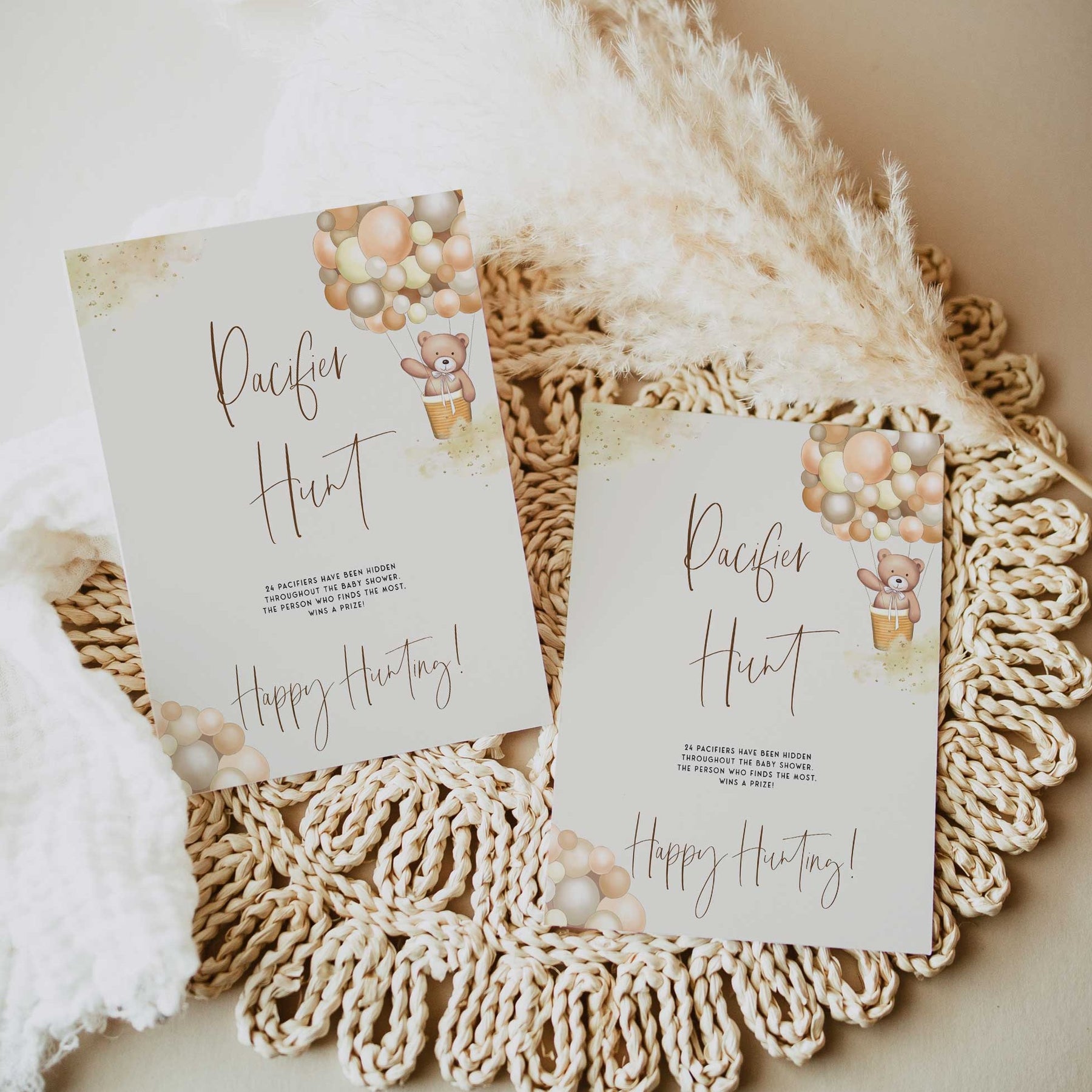 The Pacifier Hunt is a great baby shower game that gets everyone out of their seat and having fun. A twist on the traditional treasure hunt, friends and family have to find the pacifiers that you've hidden around your baby shower party. You can give prizes to winners. Get hunting!