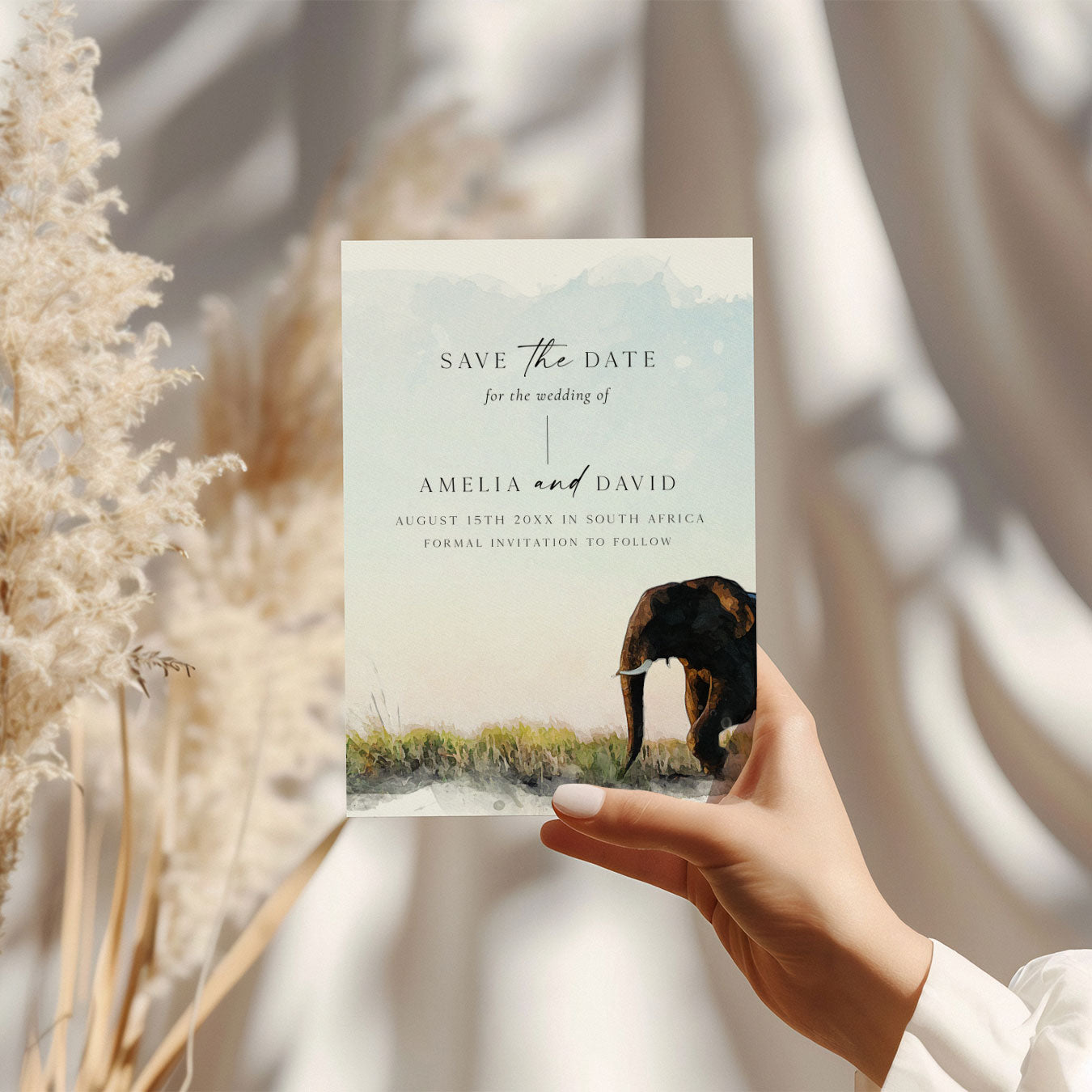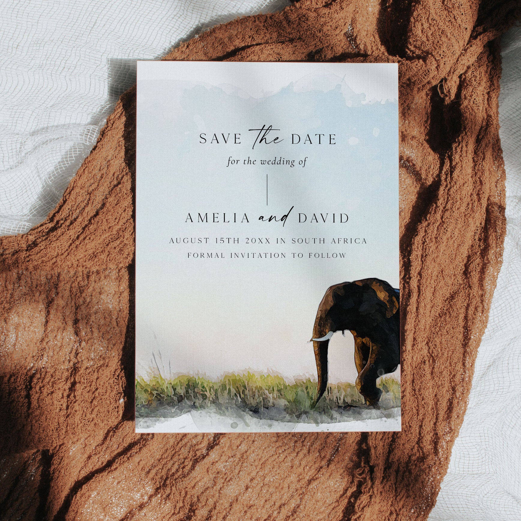 Create a timeless first impression with our editable South African themed Save the Date. If you are looking for a save the date cards for your wedding to stand out then this is for you. Personalise in Canva and send today! It couldn't be easier.