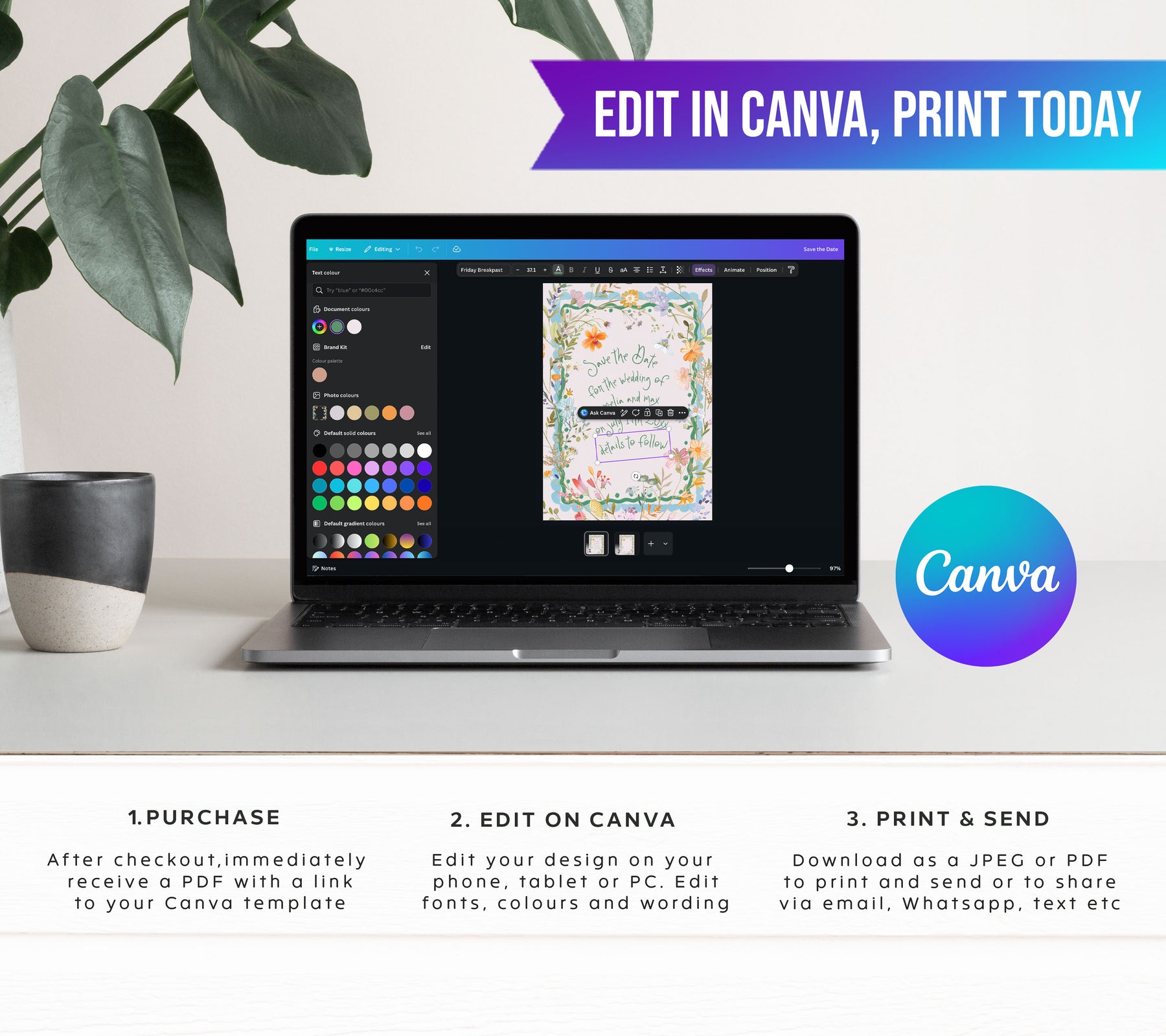 𝗪𝗛𝗔𝗧 𝗜𝗦 𝗘𝗗𝗜𝗧𝗔𝗕𝗟𝗘 ✅ Text - edit, add, delete, move, resize, rotate, colours, fonts. All wording is editable ✅ Graphics - move, resize, delete ✅ Photos & Images - can be uploaded your own images