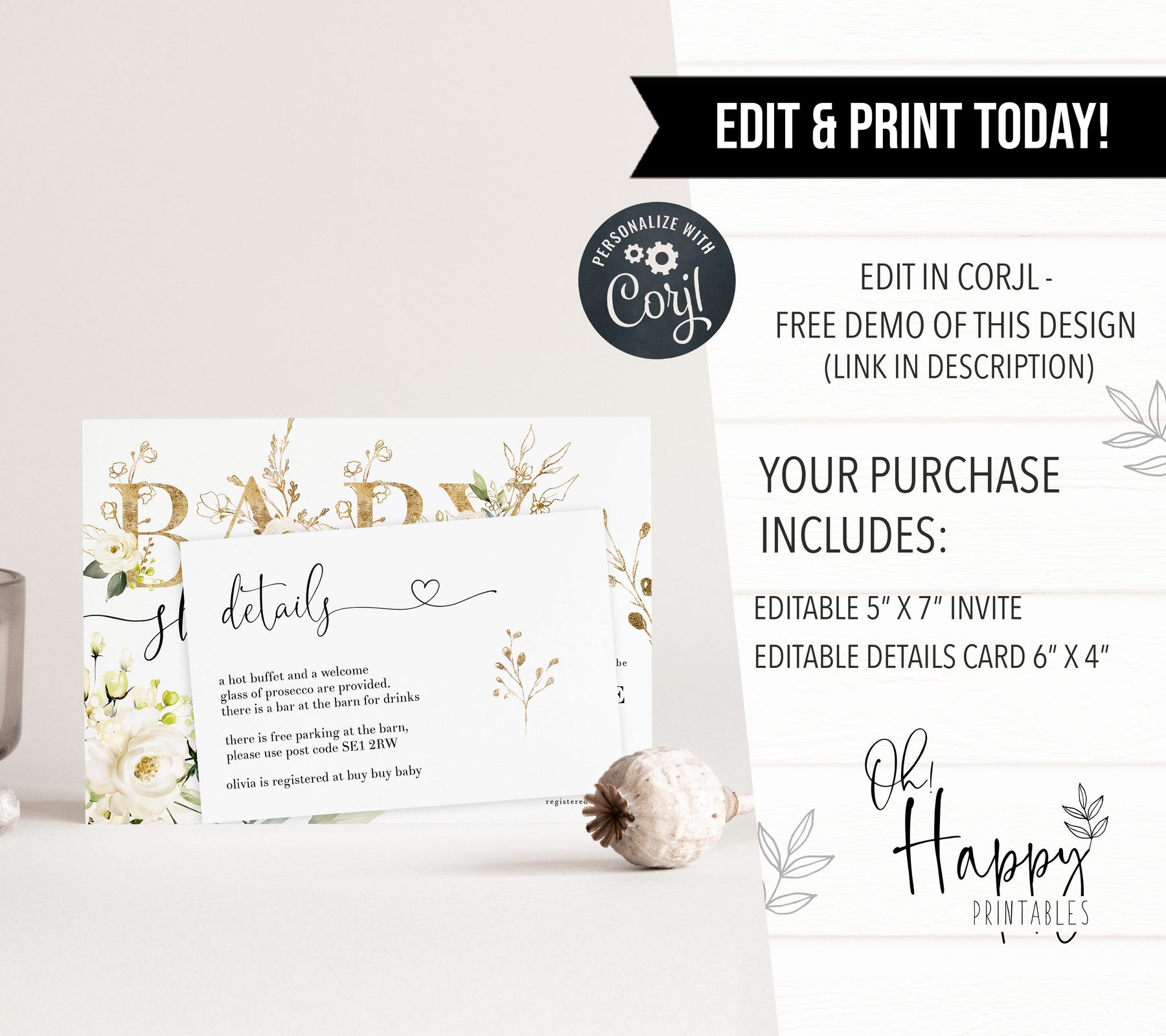 From our best-selling baby shower invitations, including a details card, it has everything your friends and family need to make it a party to remember. Download immediately and edit yourself, it couldn't be simpler!