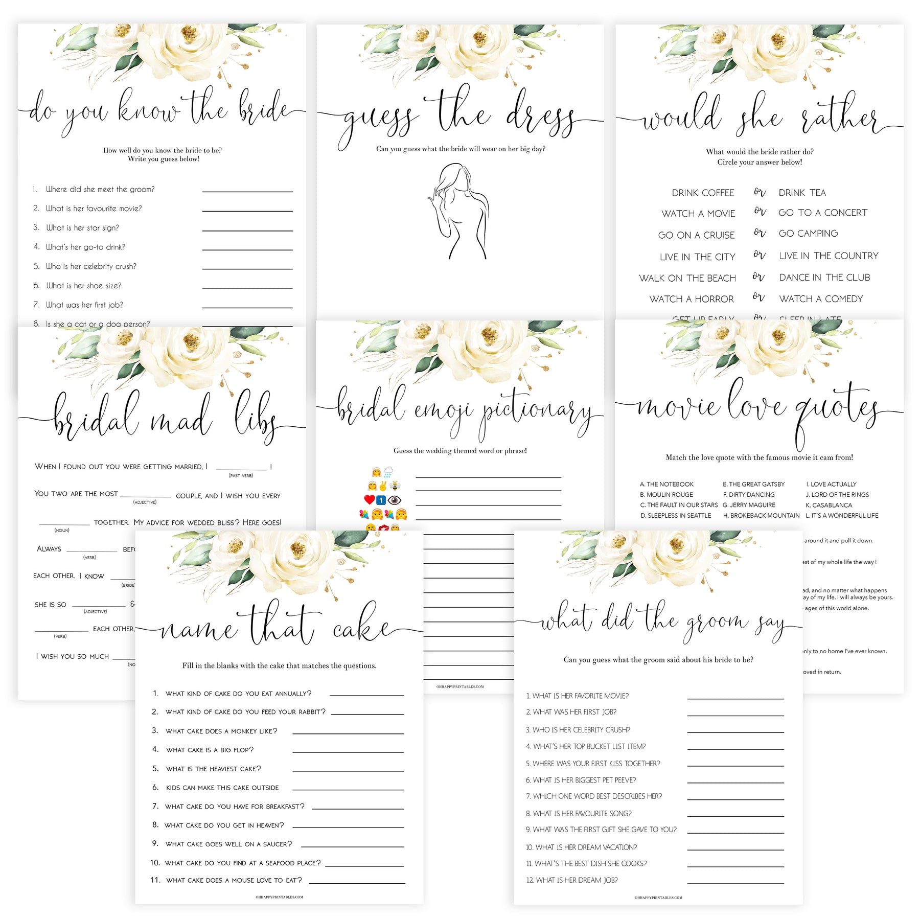 Featuring 8 of our best selling bridal shower games, this 8 pack bundle is a great selection of games all your guests will love. Simply download and print at home, it couldn't be easier.