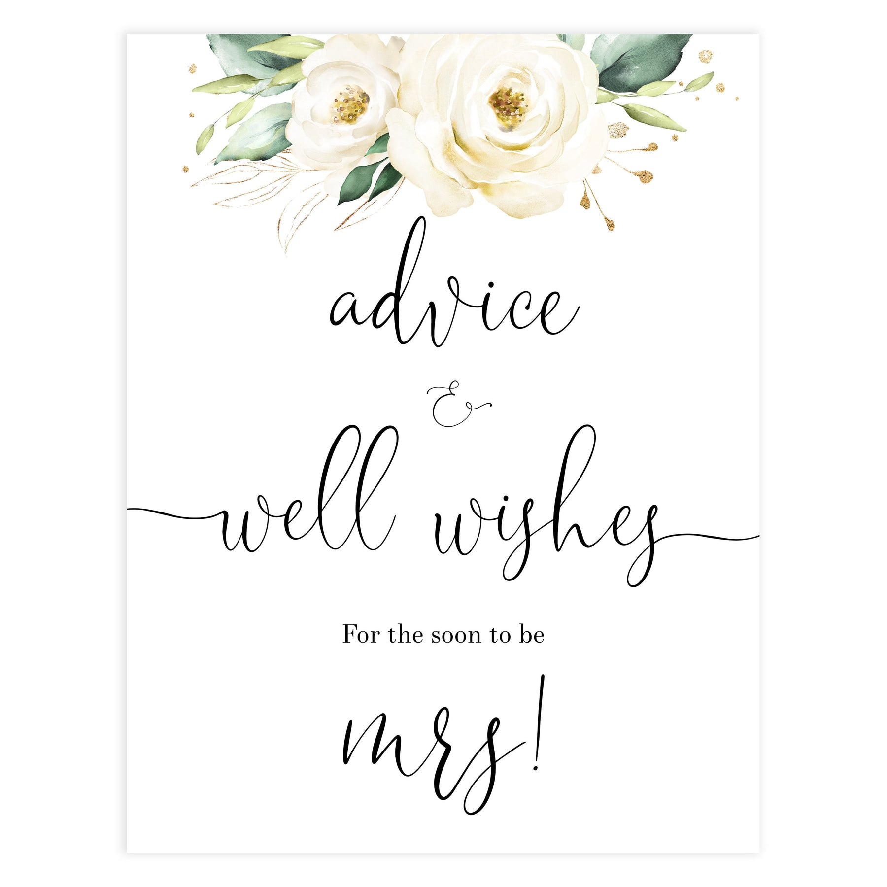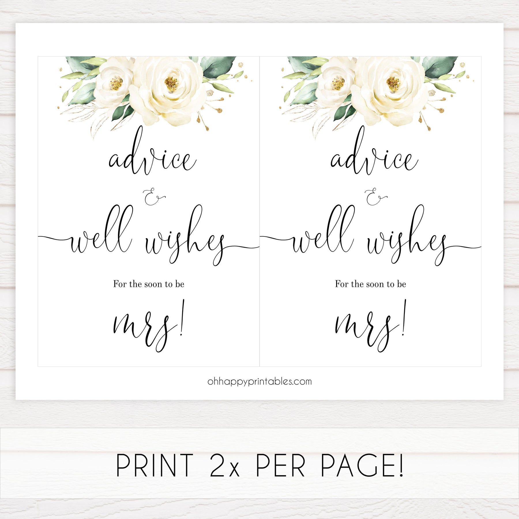 A cute table sign where people can leave their advice and well wishes for the future bride to read before her big day! A gorgeous addition to your bridal shower, this comes in two sizes. Simply download and print at home, it couldn't be easier.