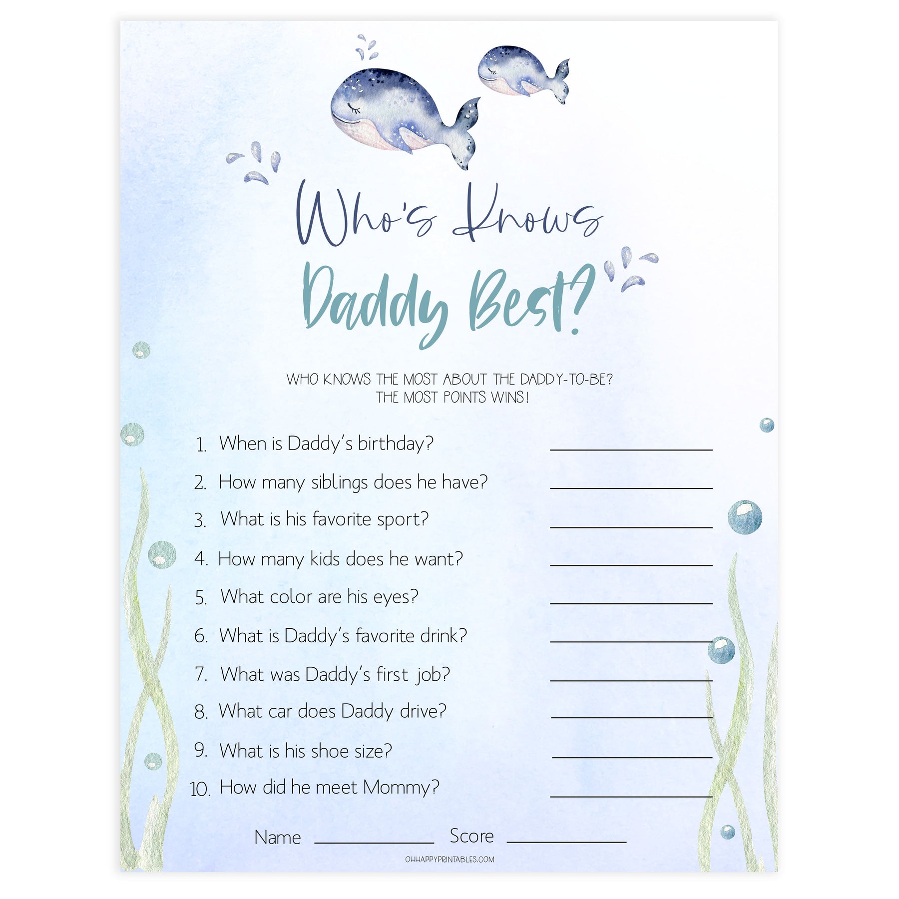A fun baby shower game that's perfect to get everyone laughing and talking, How well do you Know Daddy is a set of questions about the new Dad. Simply download and print at home.