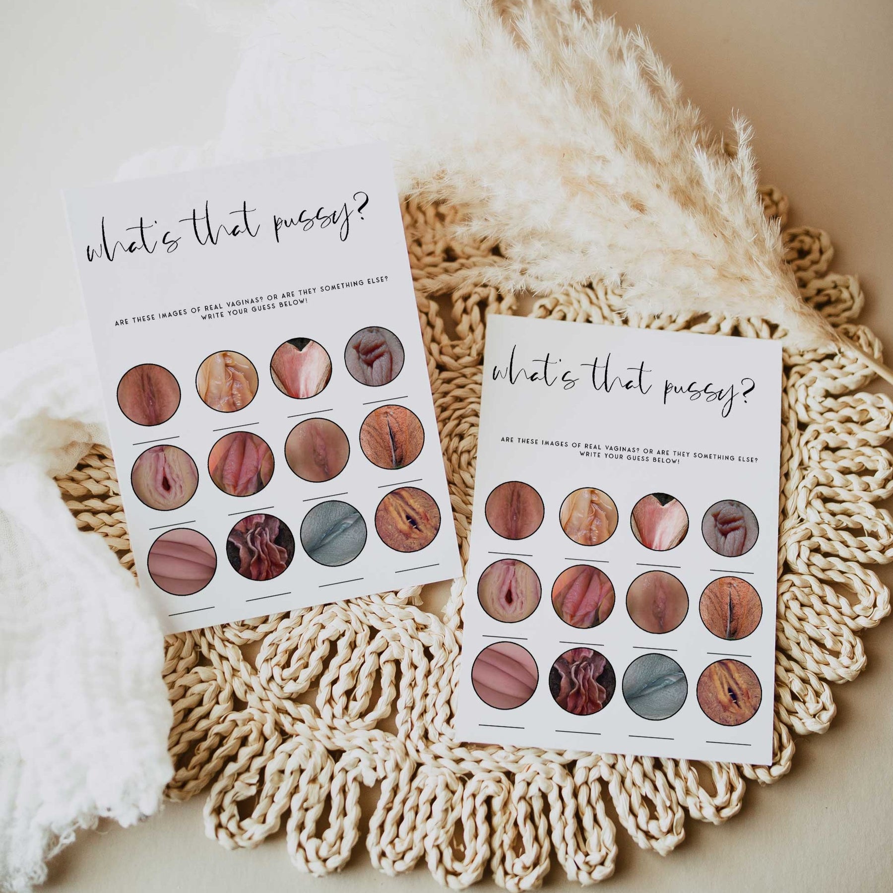 Definitely a game for the adults! As we all know, vaginas come in all shapes and sizes! This naughty bachelorette game is a great way to get everyone involved, as you try and guess which images are the real vaginas.