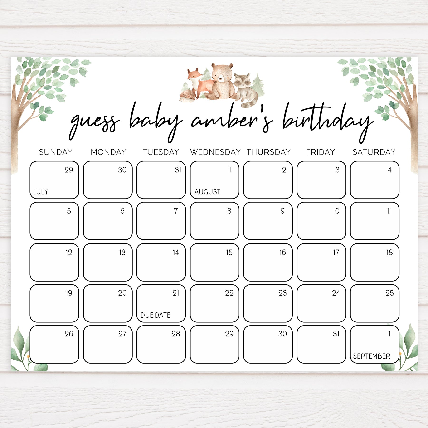Have your baby shower guests write down their predictions for the baby's birthday on your very own personalised Guess the Baby's Birthday printable poster.