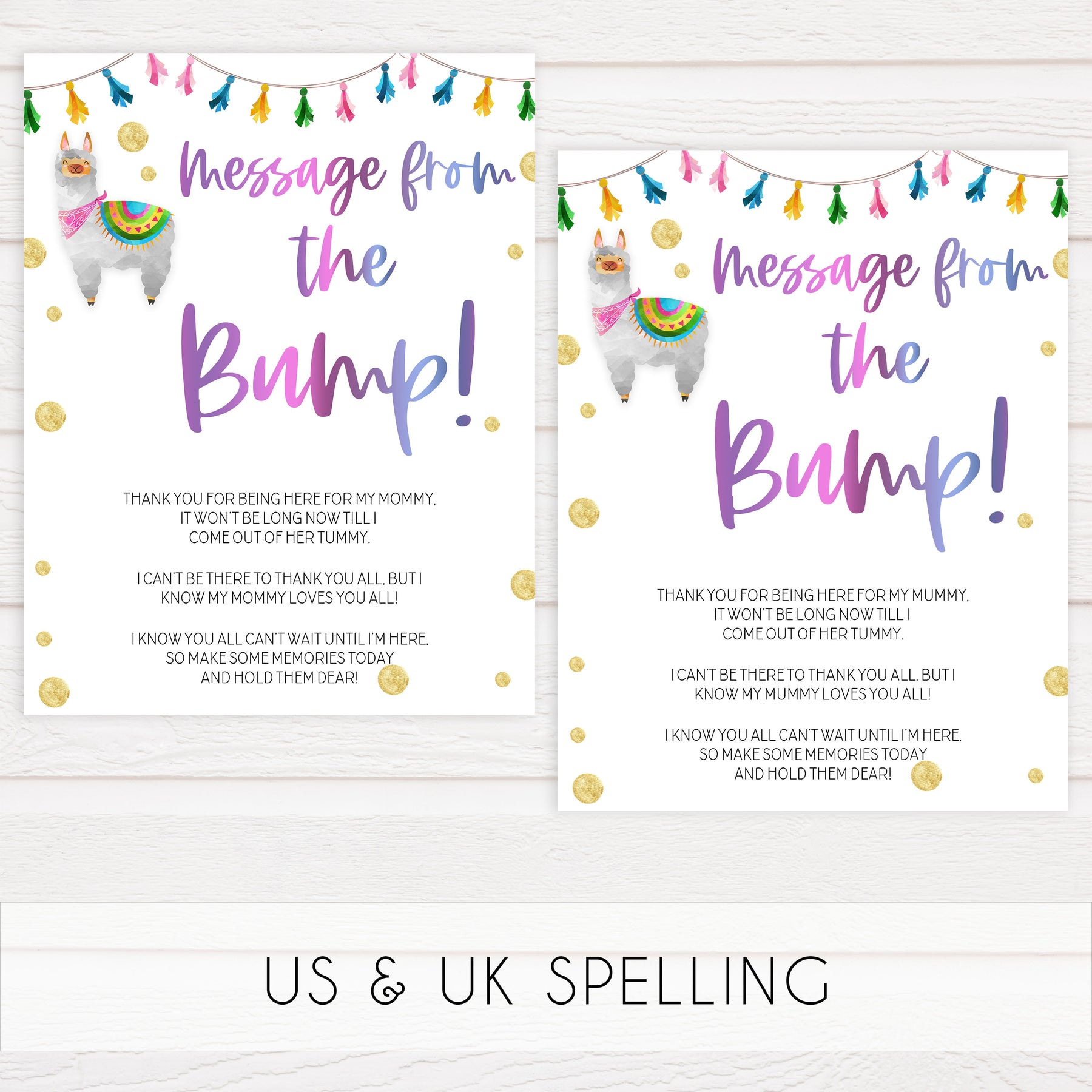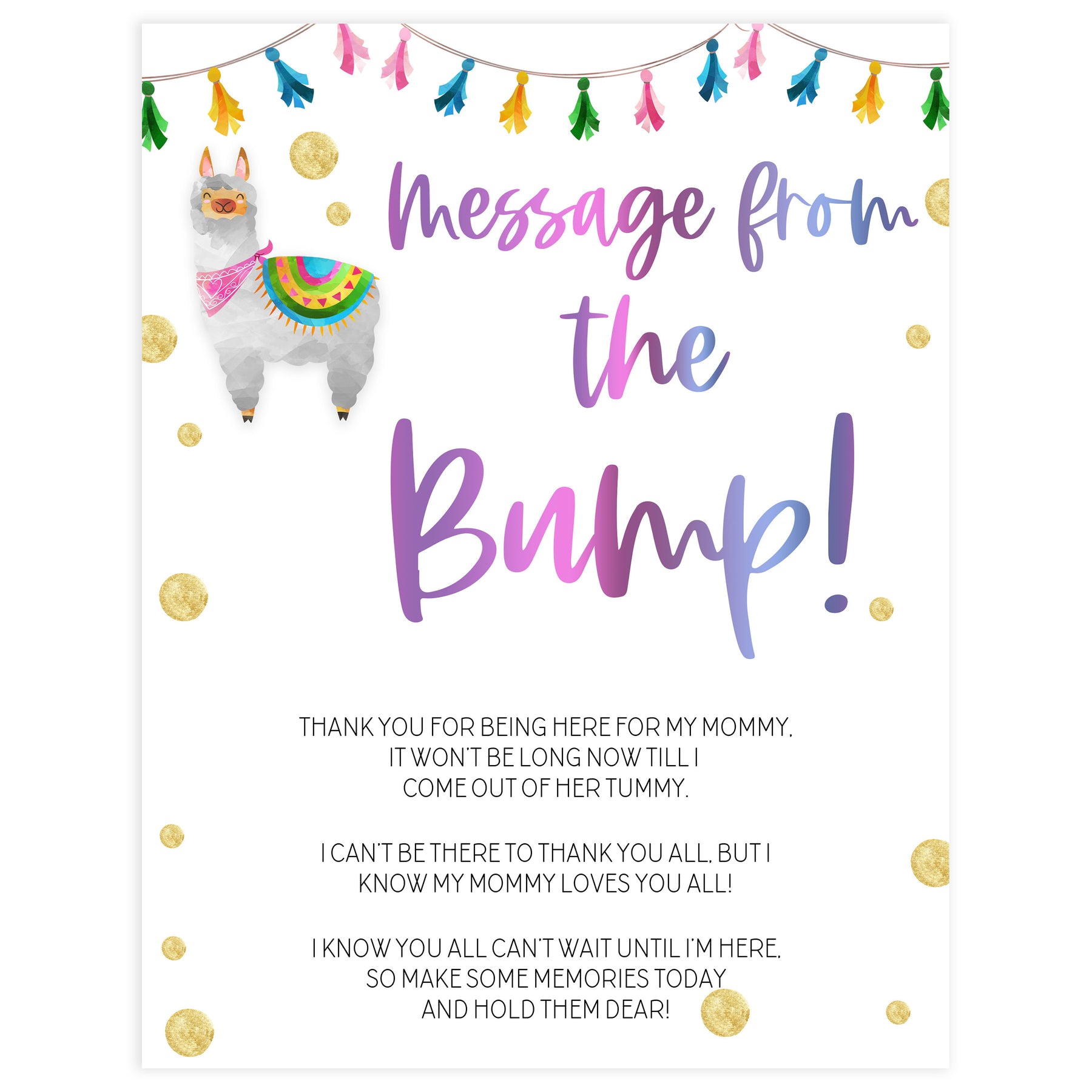 message from the bump game, Printable baby shower games, llama fiesta fun baby games, baby shower games, fun baby shower ideas, top baby shower ideas, Llama fiesta shower baby shower, fiesta baby shower ideas