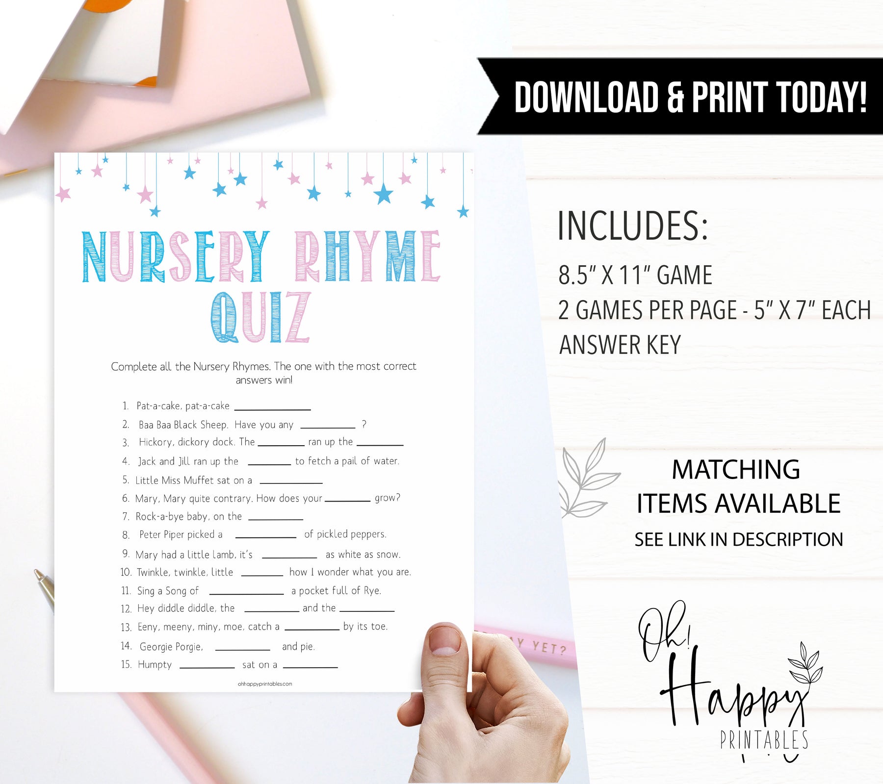 Have your friends fill in the blanks with the nursery rhymes. Just download and print at home. The one with the most right answers win.