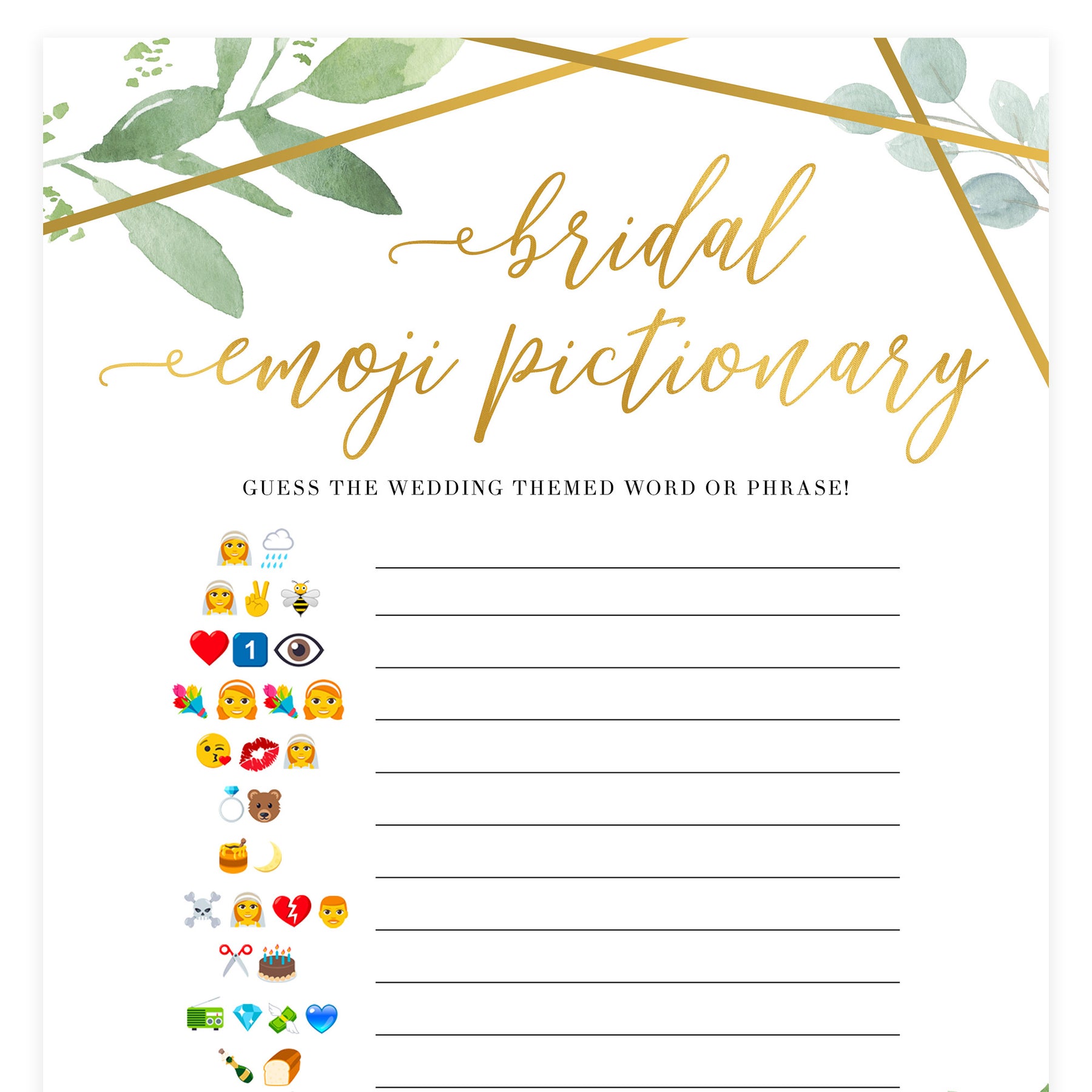 A great Bridal Shower game that's challenging but loads of fun - guess the wedding themed word or phrase, spelled out in emoji! Everyone will love figuring these out, adding some unique fun to your Bridal Shower.