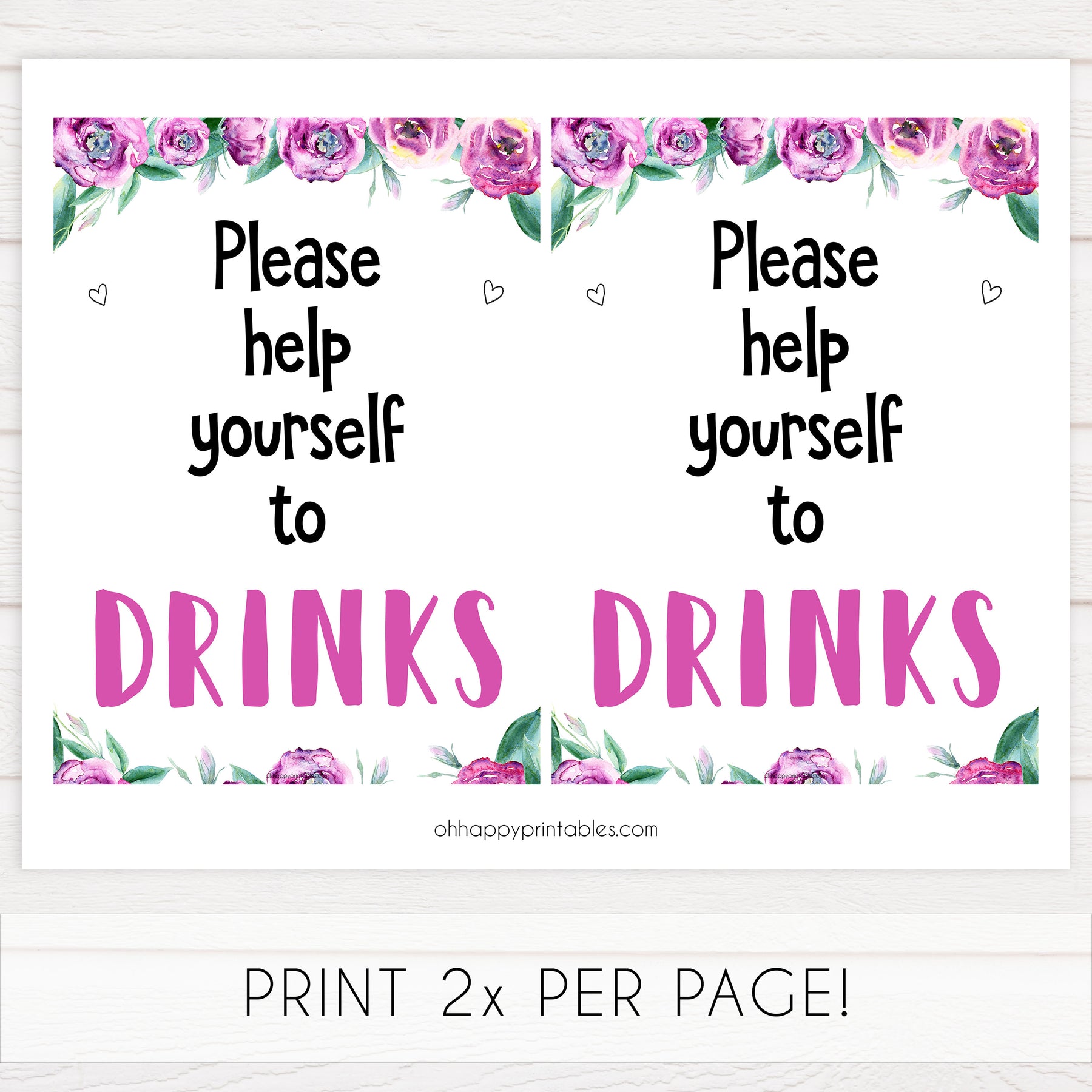 Add the finishing touch to your baby shower with this 'Drinks' table sign.