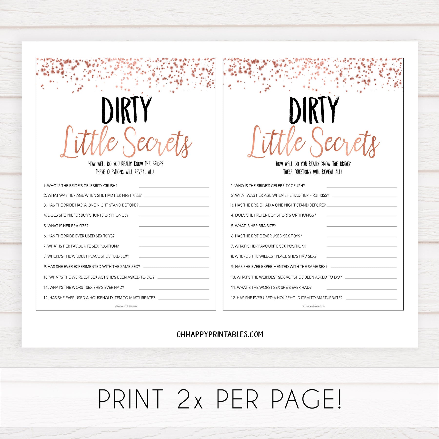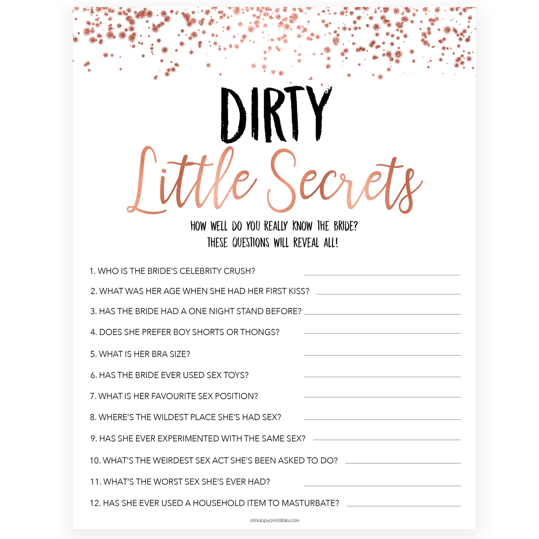 Do you really know the bride-to-be? These questions reveal a saucier side to her you might not recognise! A great game to play with your girlfriends, hearing everyone's guesses about the bride's dirty little secrets is half the fun.
