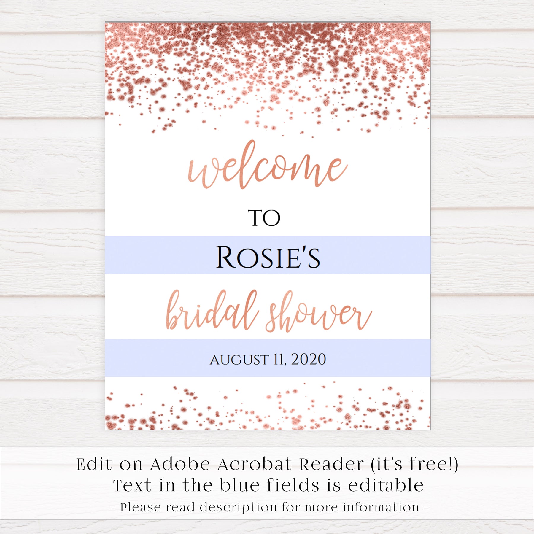 Editable Bridal Shower Welcome Sign - Rose Gold Foil