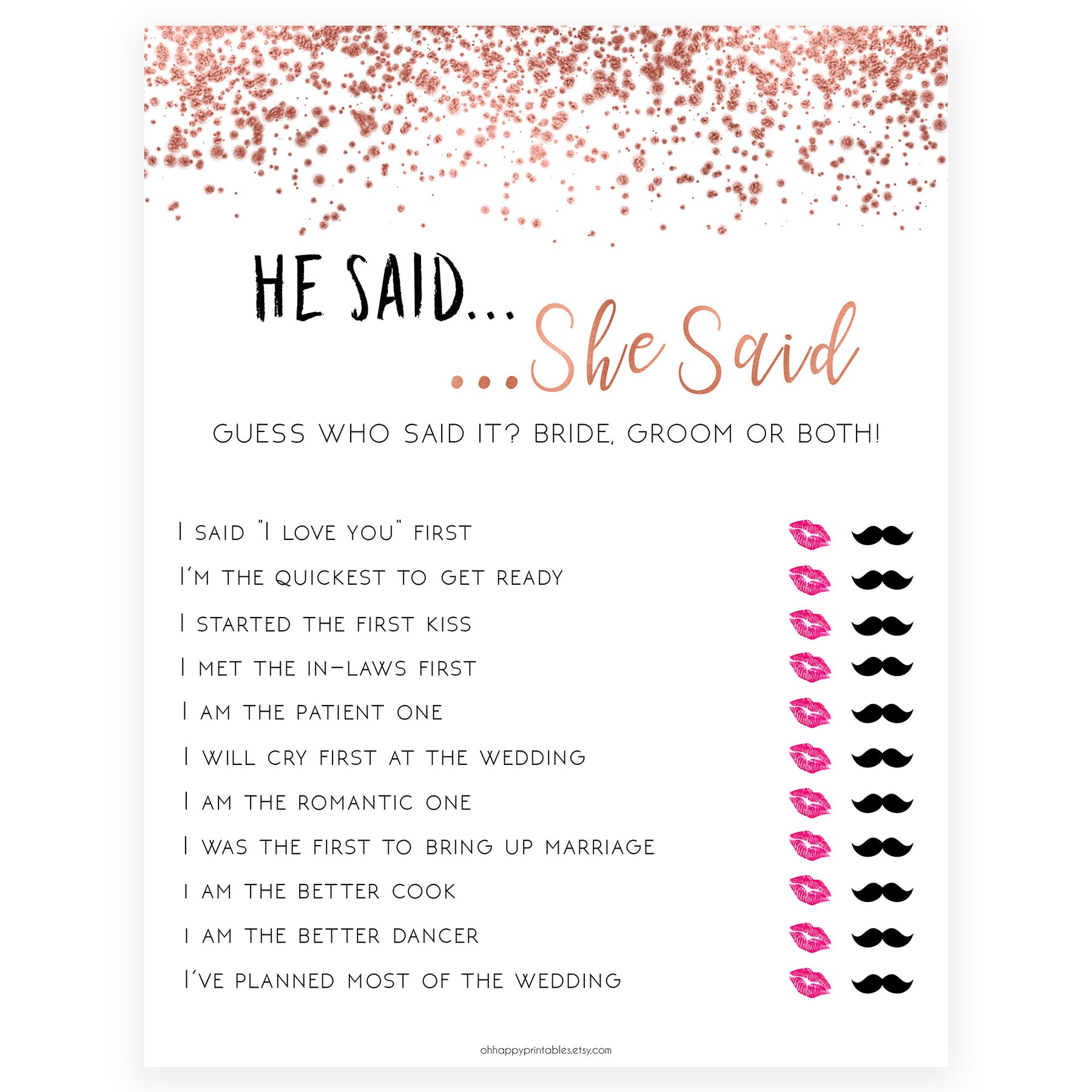 In this classic bridal shower game, can you guess whether the bride or the groom said the statement? A fun game that's best played with friends of the couple.