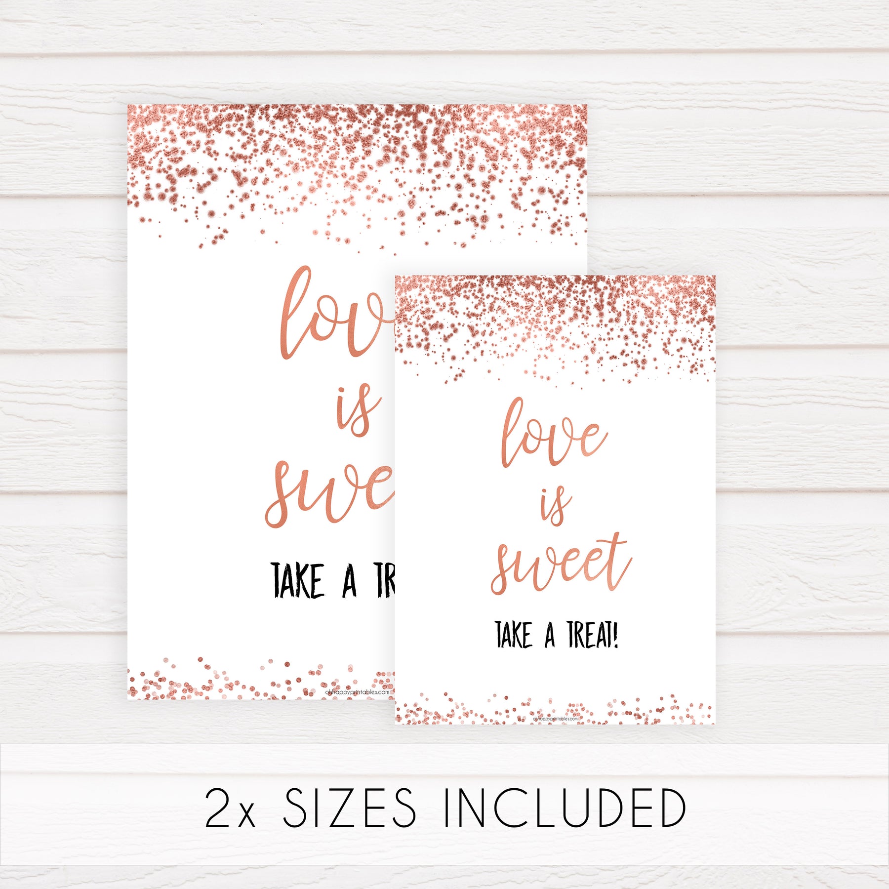 A cute idea for your favors, this Love is Sweet, Take a Treat sign will put a smile on your guests' face. Perfect for bridal showers or weddings where your favors are sweet treats! This sign fits in a frame and is ideal for putting on a table. Simply download and print at home, it couldn't be easier.
