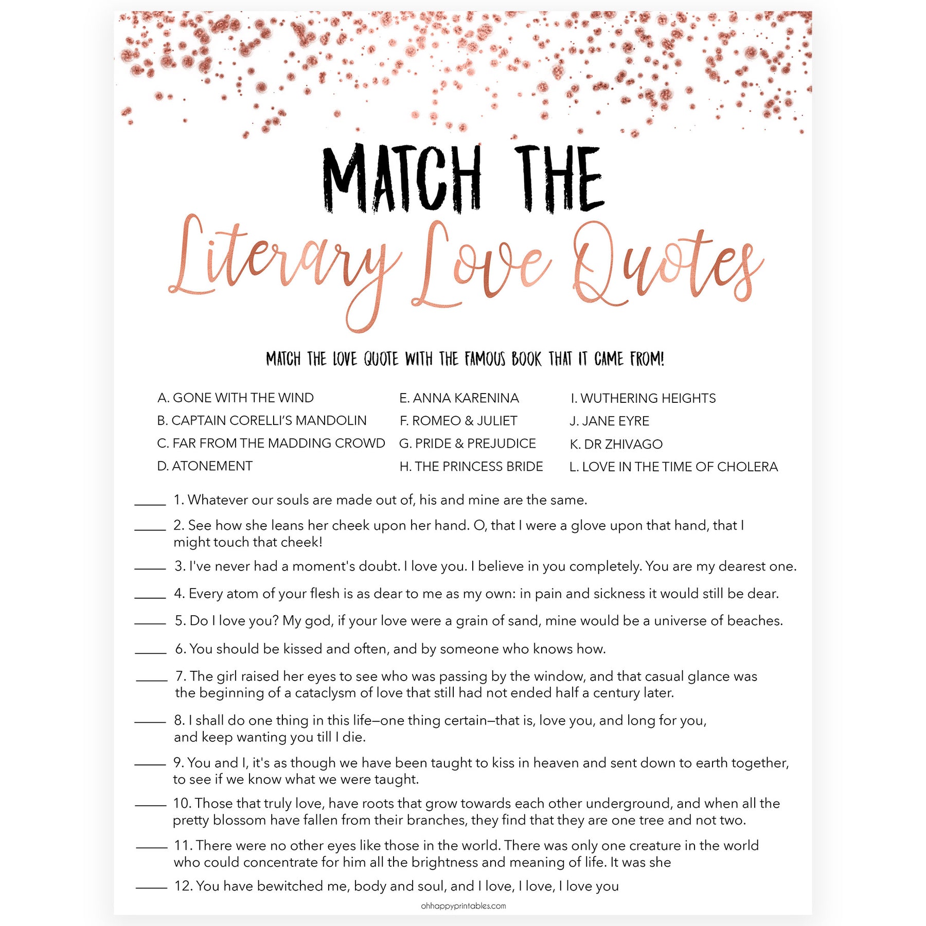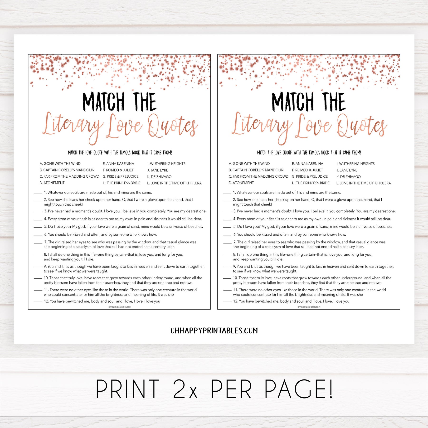 Do you prefer the charming Mr Darcy or the rugged Heathcliffe? Test your literary romance knowledge with this unique bridal shower game. Featuring love quotes from some of the greatest novels of all time, you might even find some inspiration for your wedding day vows!