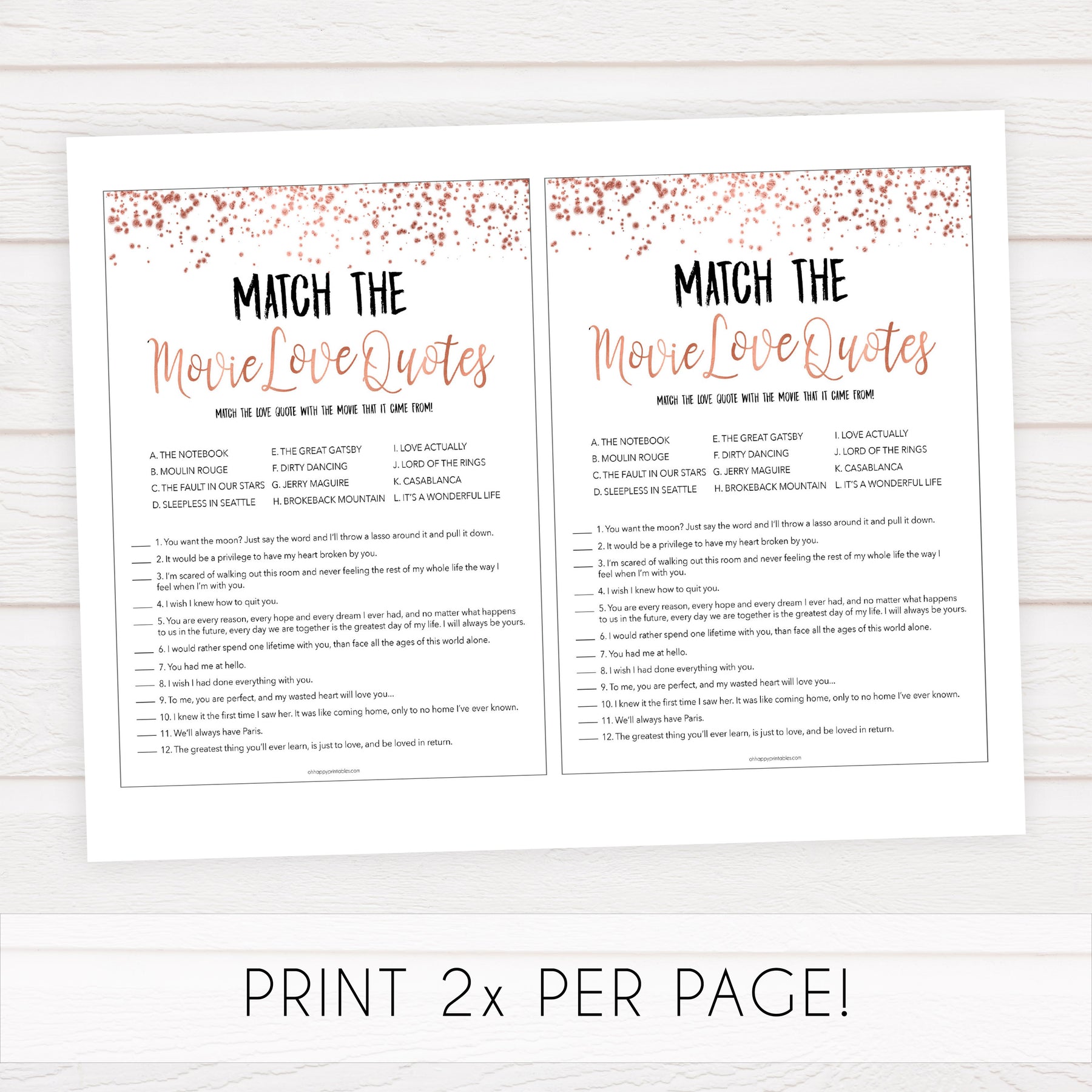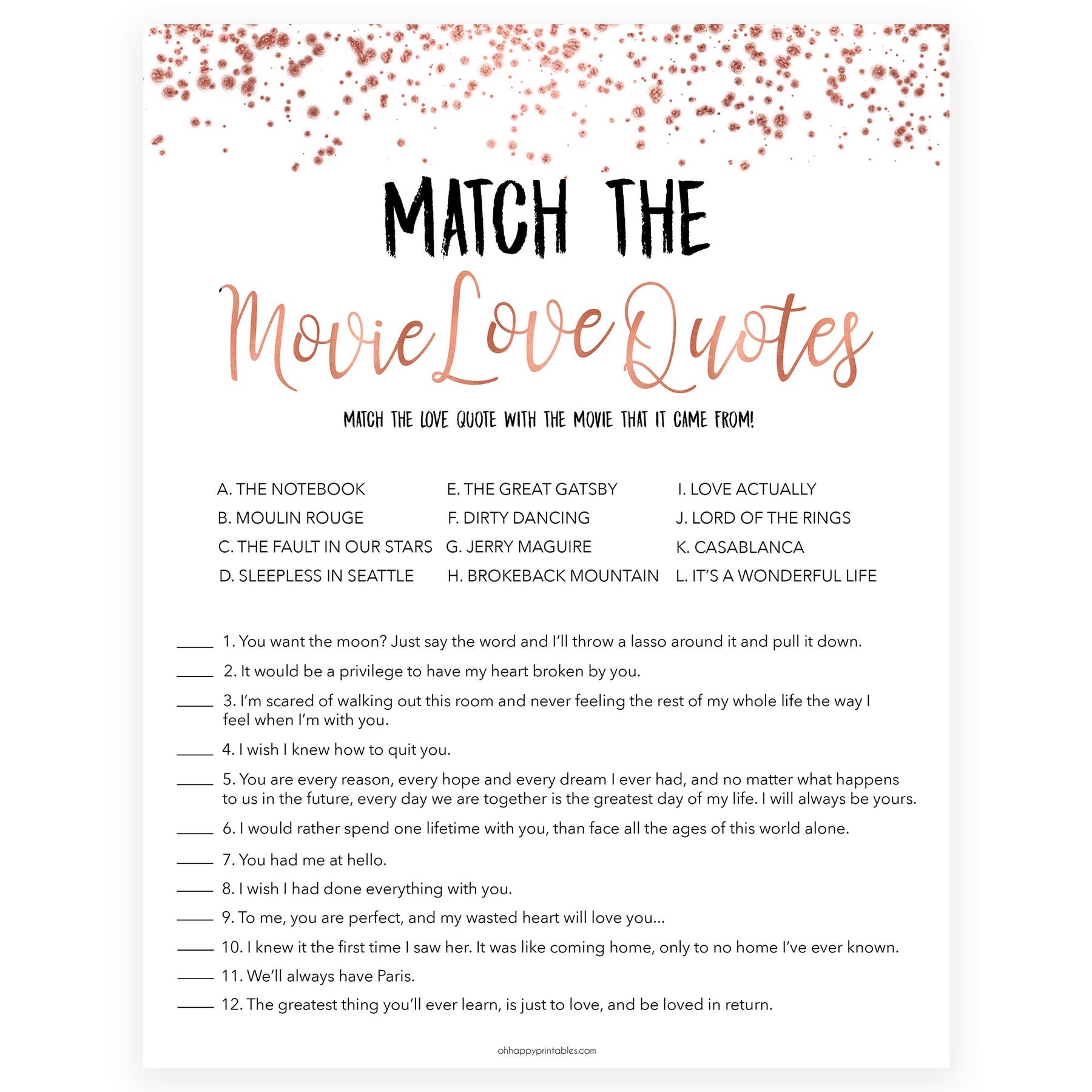 Do you know your Pride & Prejudice from your Casablanca? Test your movie romance knowledge with this unique bridal shower game. Featuring love quotes from some of the greatest films of all time, you might even find some inspiration for your wedding day vows!