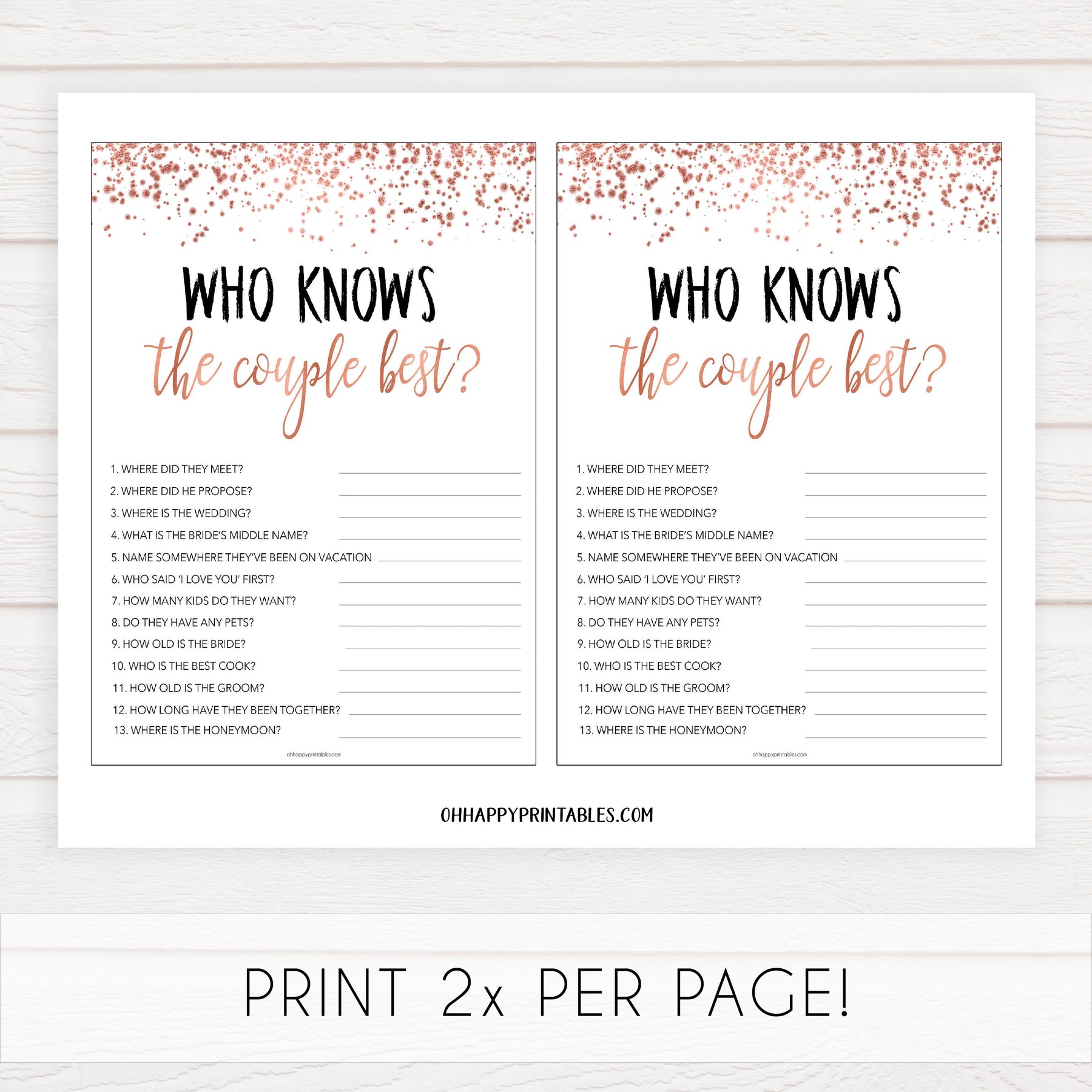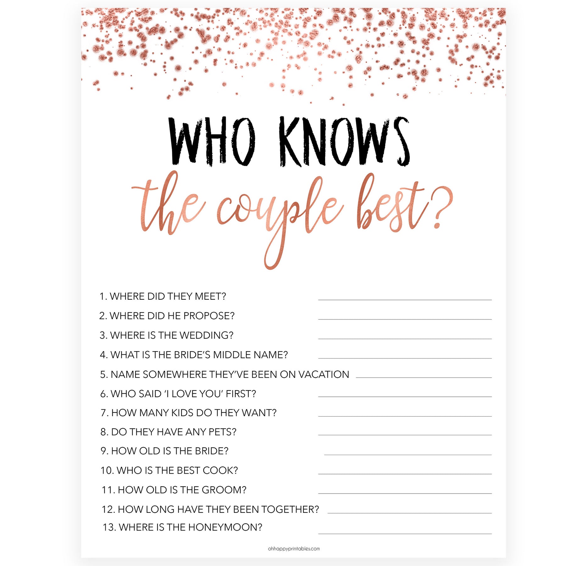 A perfect game for co-ed wedding showers, Who Knows the Couple Best is a great way for friends of the couple to share their knowledge! A fun and lighthearted game that's perfect for getting the party started.